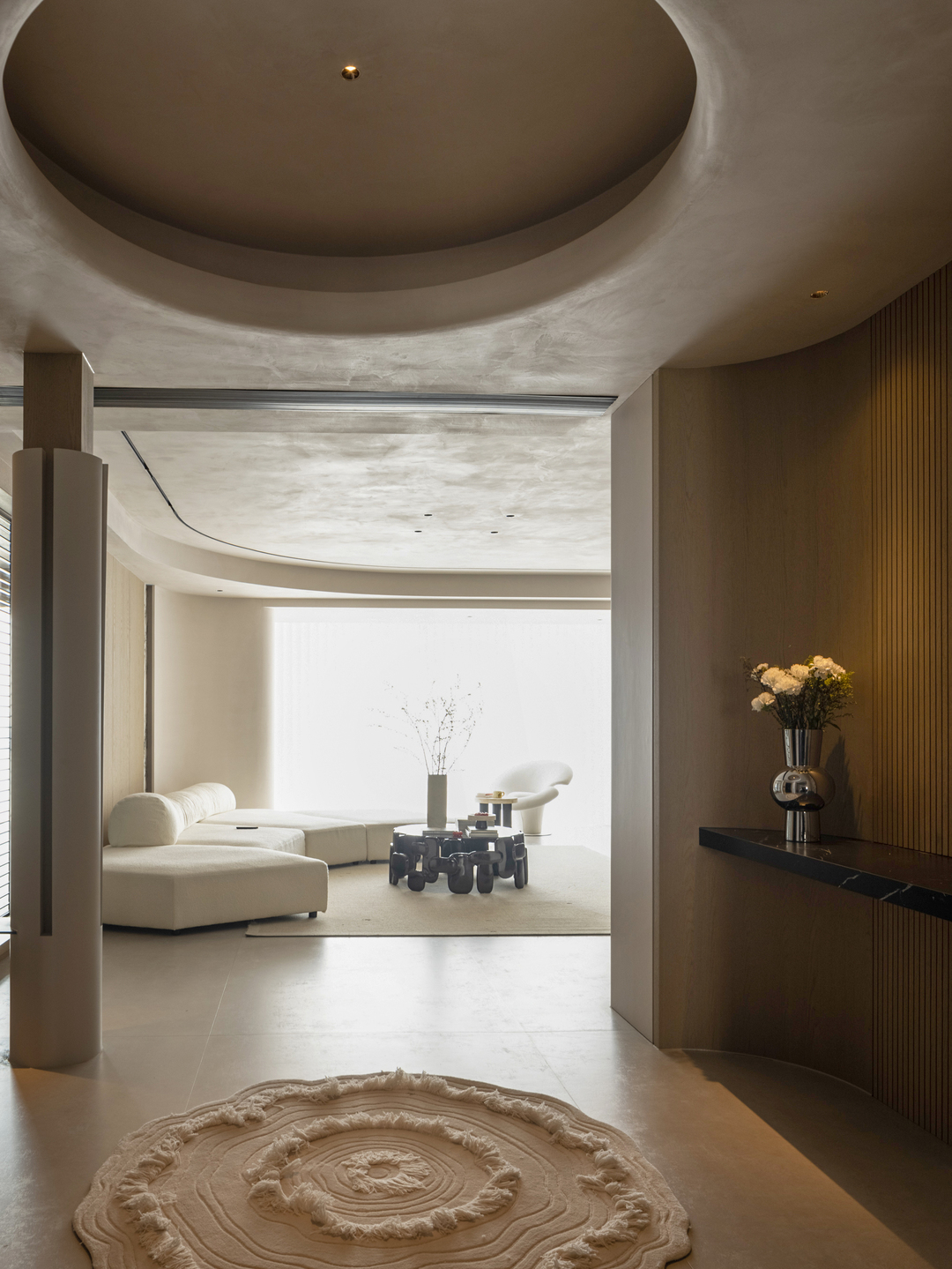 步入空间,弧形穹顶以现代笔法勾勒出流畅天际,暖色调基底营造出沉静而包容的氛围。每一处细节都是归家体验的提升。