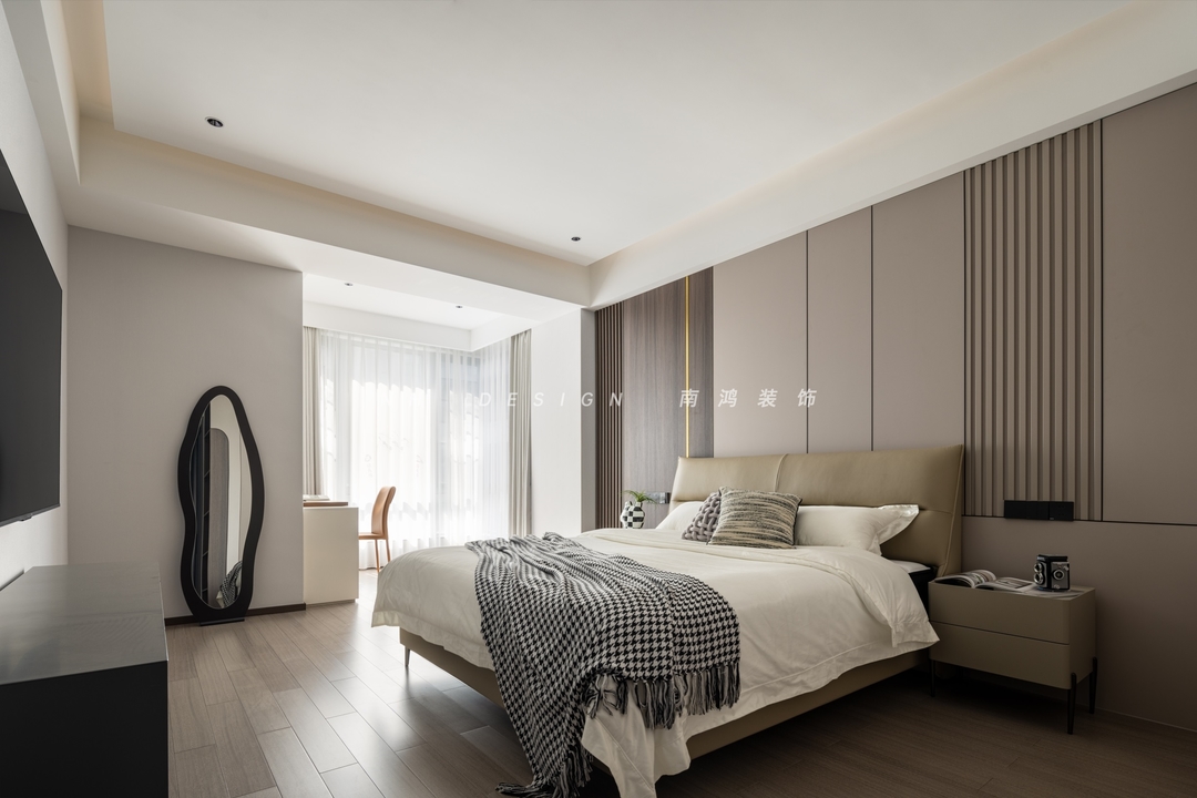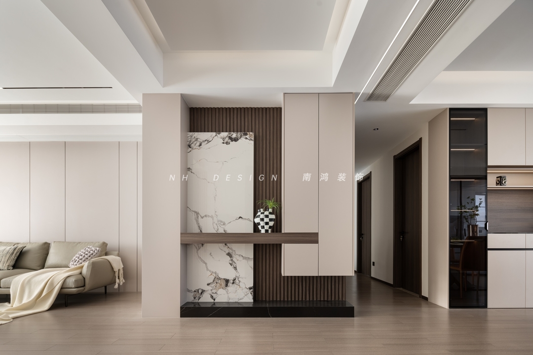 前言: 本案空间的结构线条与材质选择偏向简洁硬朗,墙面装饰以木饰面、木格栅与硬包为主材,全屋统一附着奶茶色调,营造平稳舒缓的氛围。居室在质朴无华中透出从容与优雅,不言自明地展露出静谧的质感魅力。