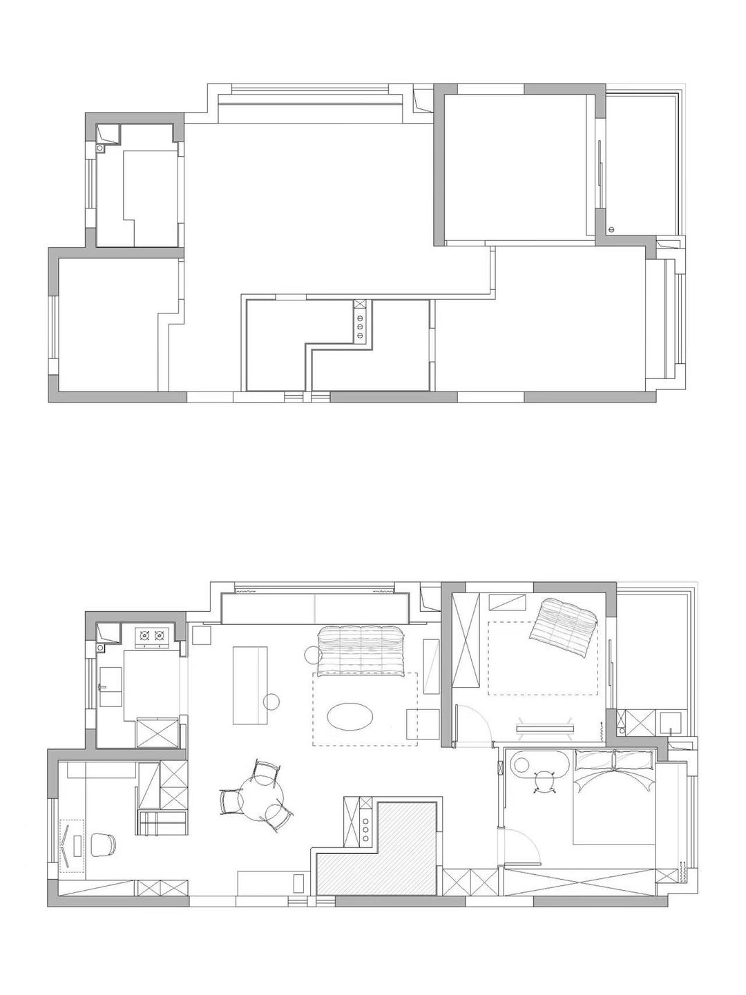 拆除了一个卫生间,改造了书房、厨房、客厅和主卧,重新设计了动线