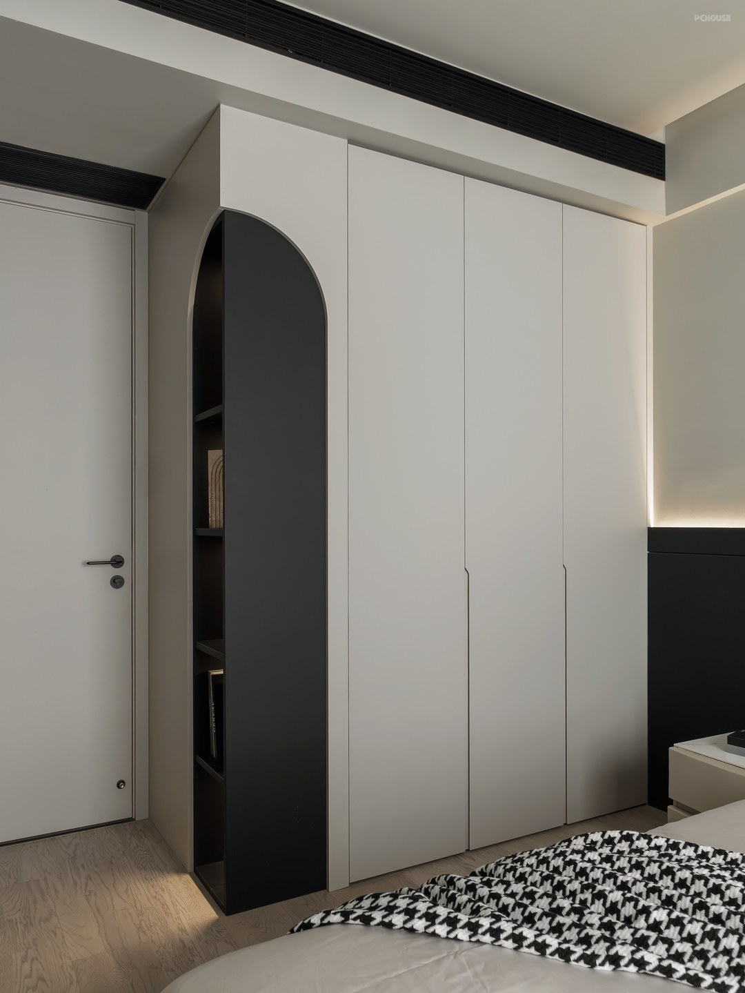 将收纳为提升生活品质的关键。通过增设床尾柜、利用隐形门优化动线,将收纳系统无缝嵌入,实现“收纳于无形”,在视觉整洁的同时,满足海量储物需求。