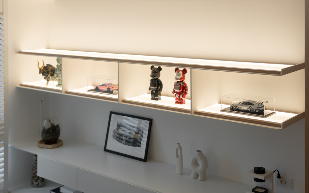 两种光源相互交织,在明暗之间堆叠出立体的静谧感。