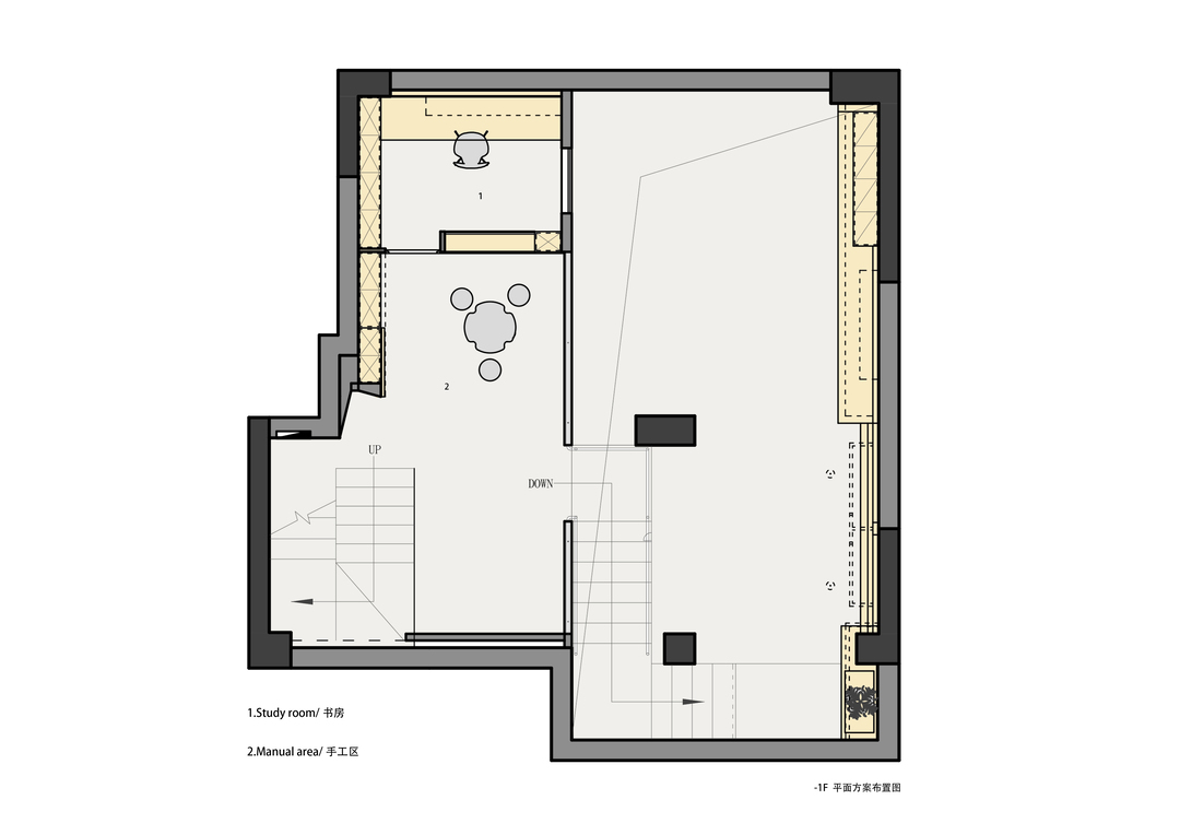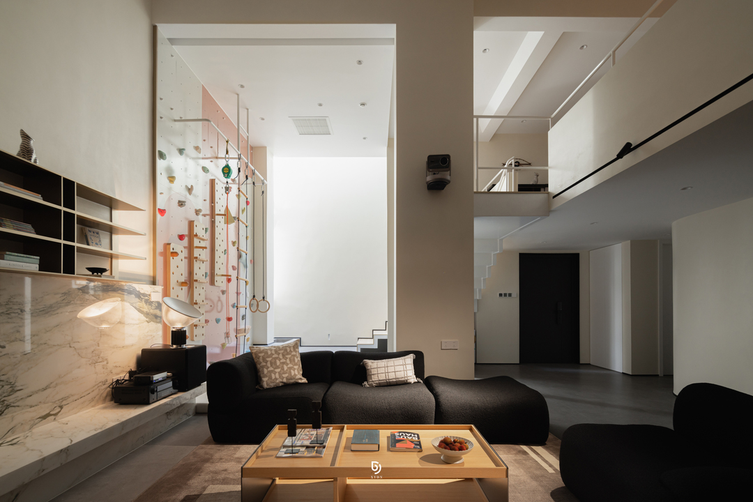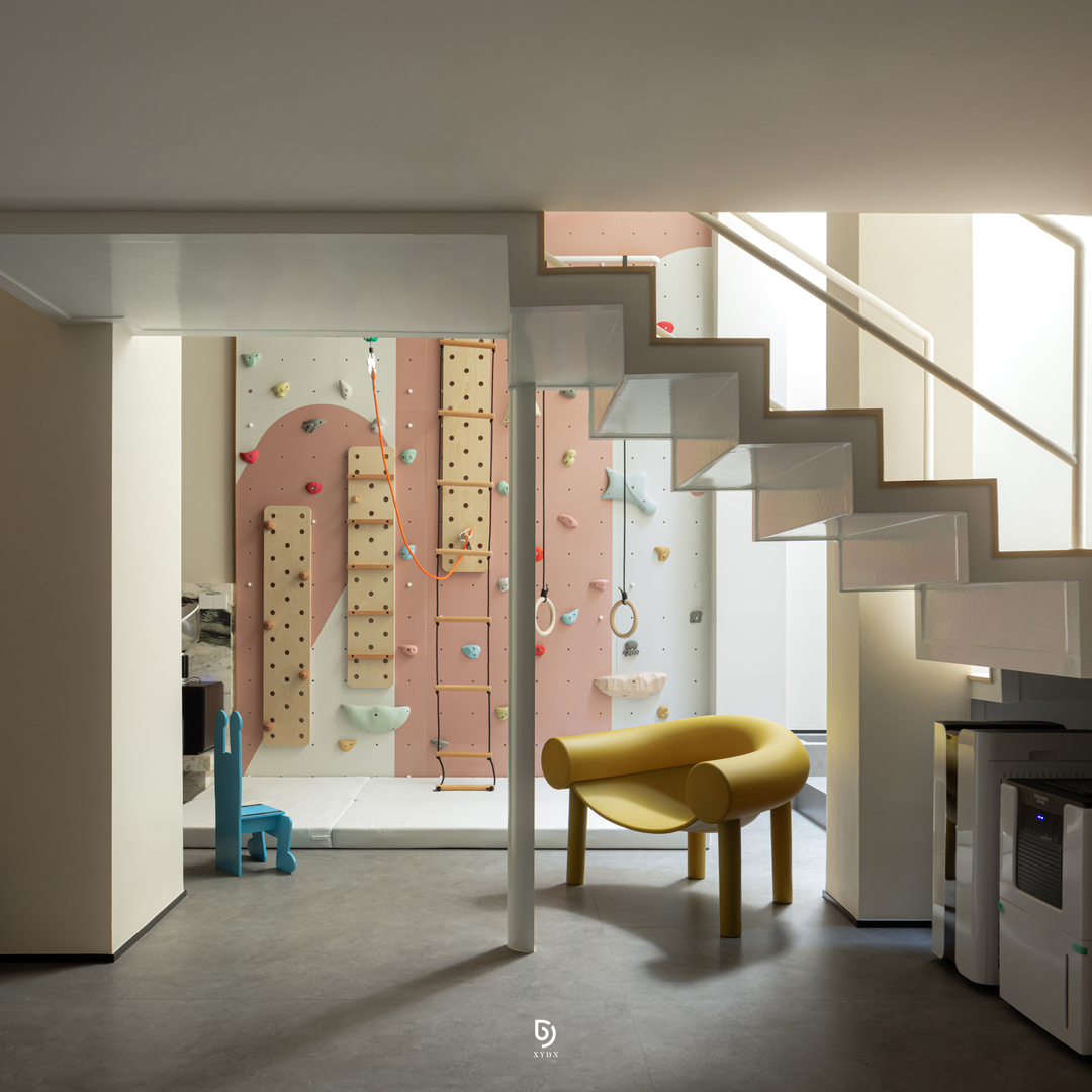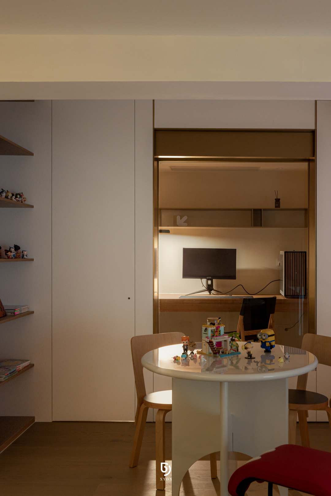 3.负一楼设置夹层空间,划分为了男屋主的书房与儿童手工区,一个相对安静自由的角落。