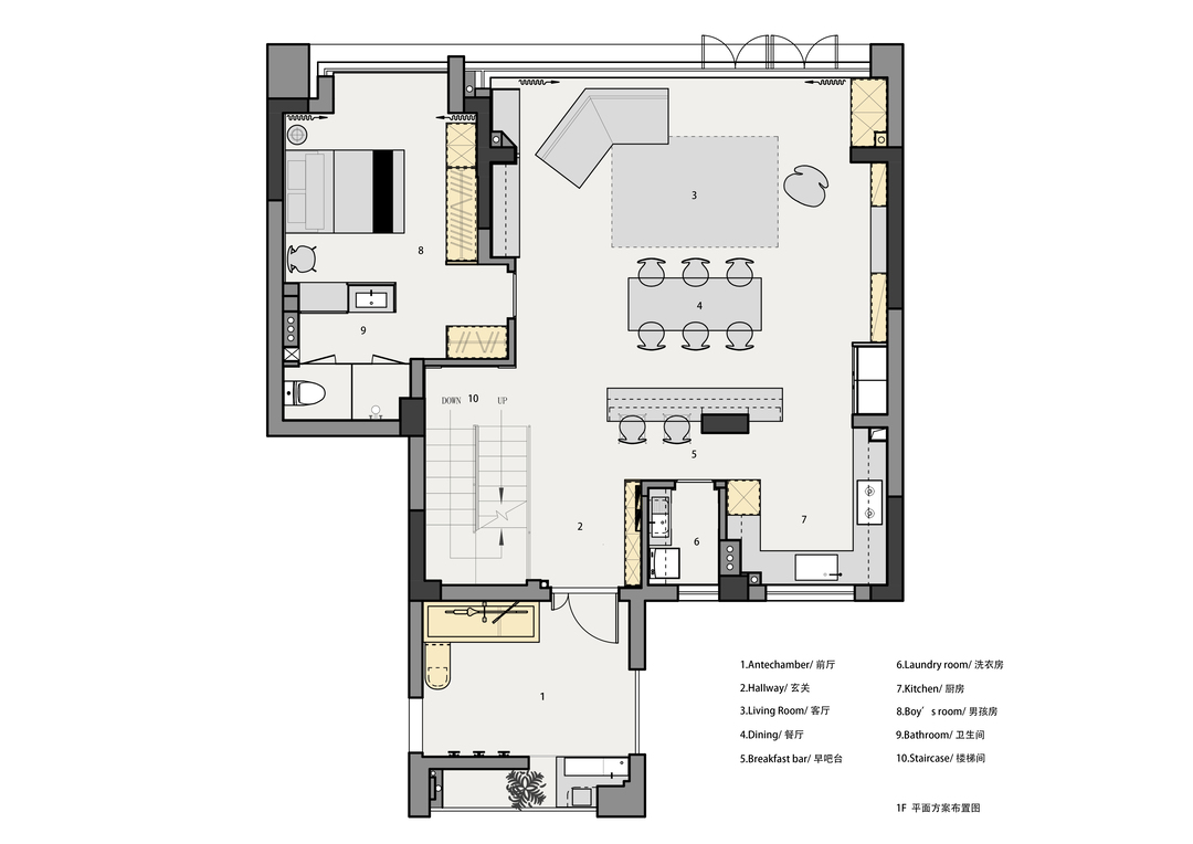 4.一楼作为一个家庭厅和小花园来使用,烹饪用餐写作业,家庭日常活动交流最多的空间。