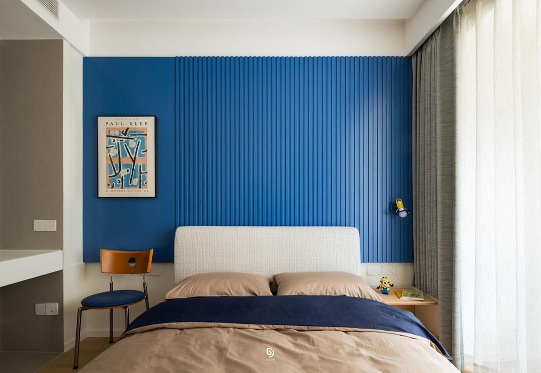 5.应屋主要求,考虑培养儿子的独立自主性,男孩房设置在了一楼,两个孩子的卧室分在两层不同区域,保证一些私密性。