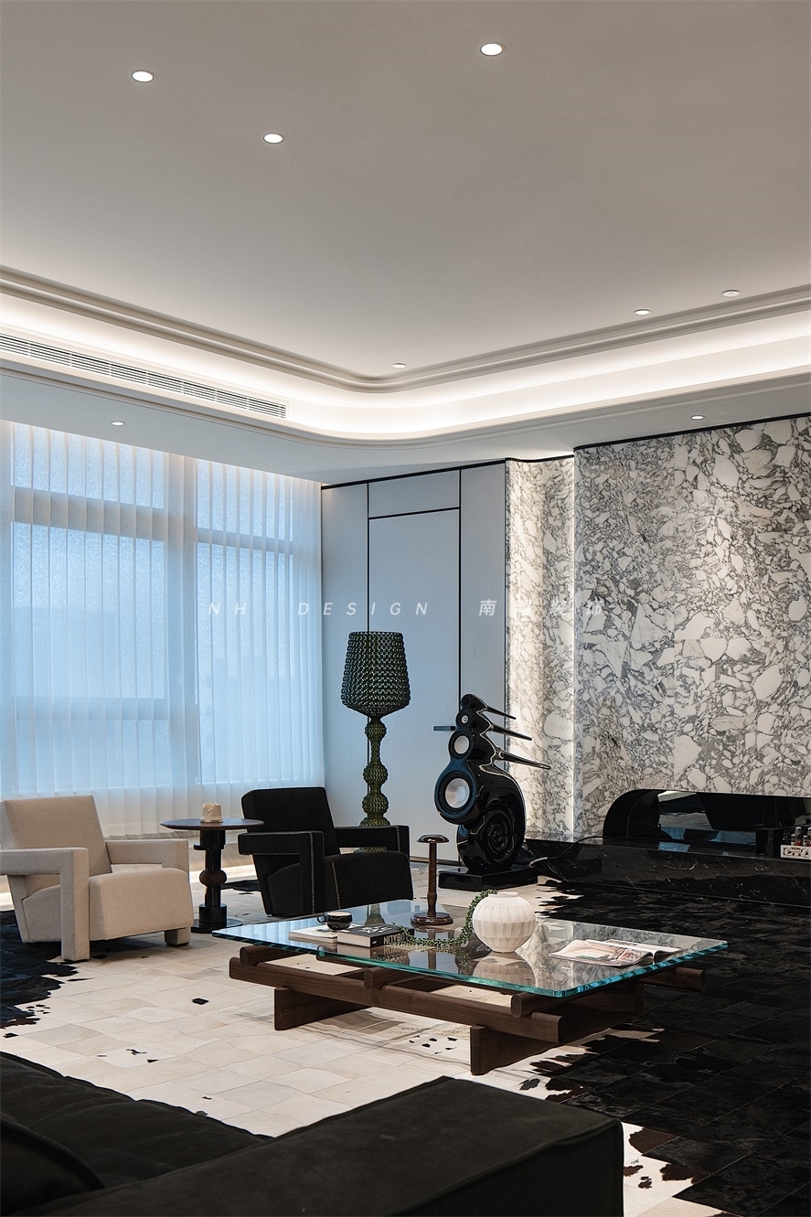 前言: 本案是一套563方的精装大平层项目。在既有的户型框架之上,设计师以精致的软装笔触细心雕琢,通过材质的对话与色彩的层次,赋予了空间分外饱满的情绪与内涵。