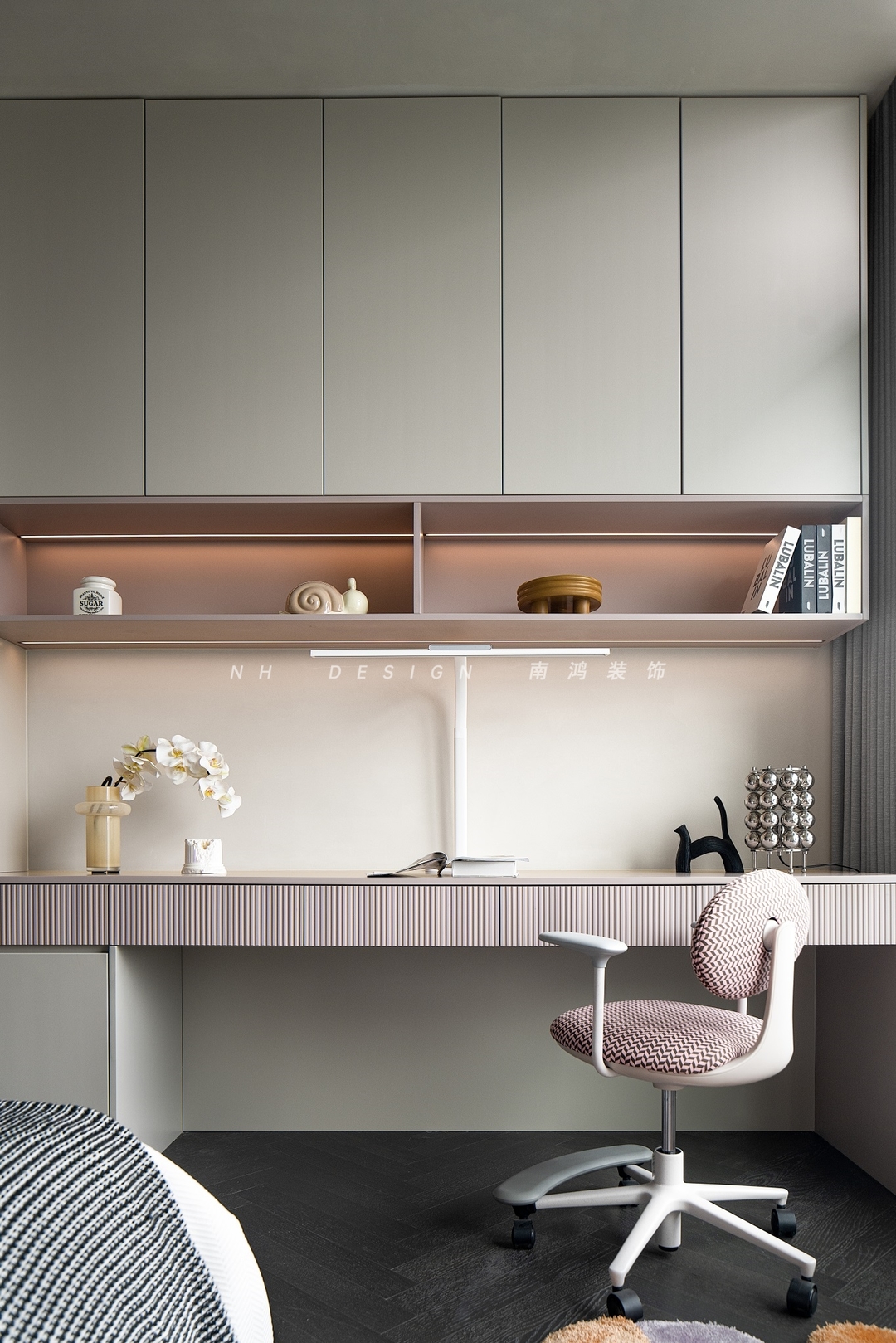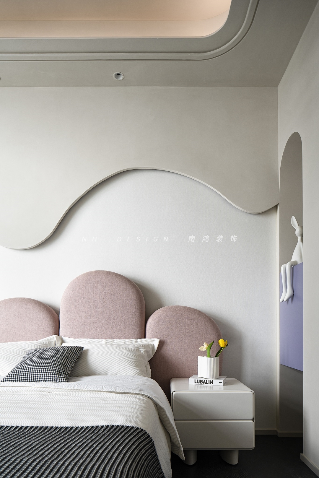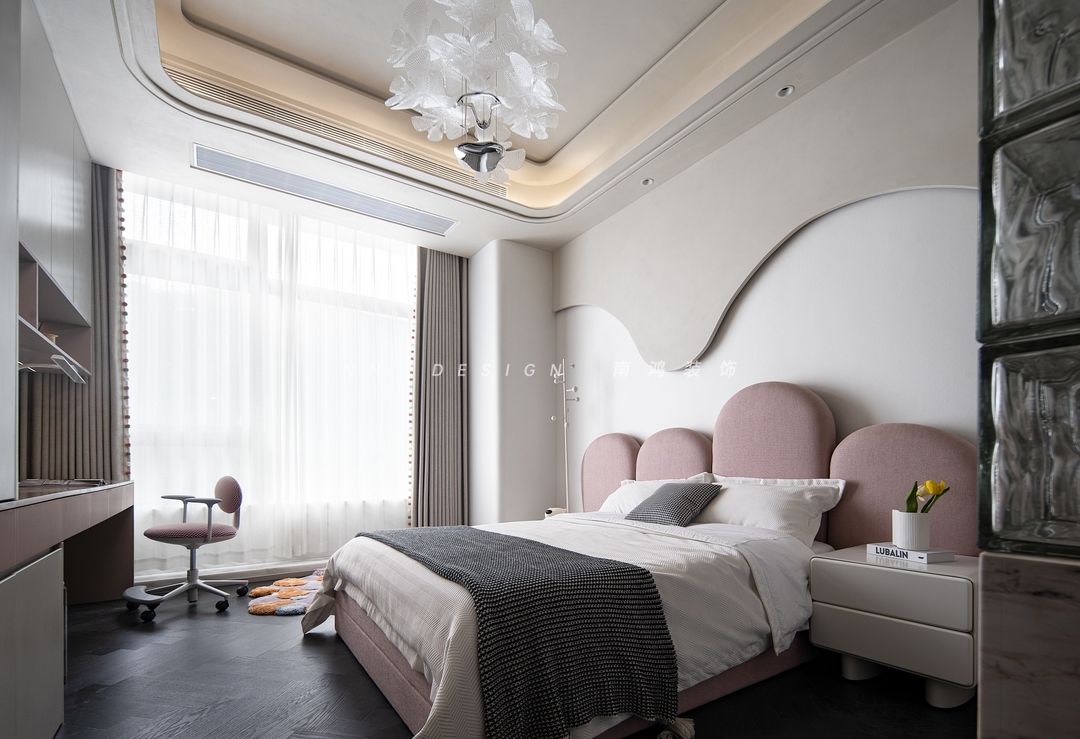 儿卧这间暗卫,通过设计大改造,成功摆脱了无窗的压抑和昏暗。大面积透光玻璃砖,既能自然引光,本身又是一大装饰亮点。内部以极简线条勾勒轮廓,营造轻盈美学。