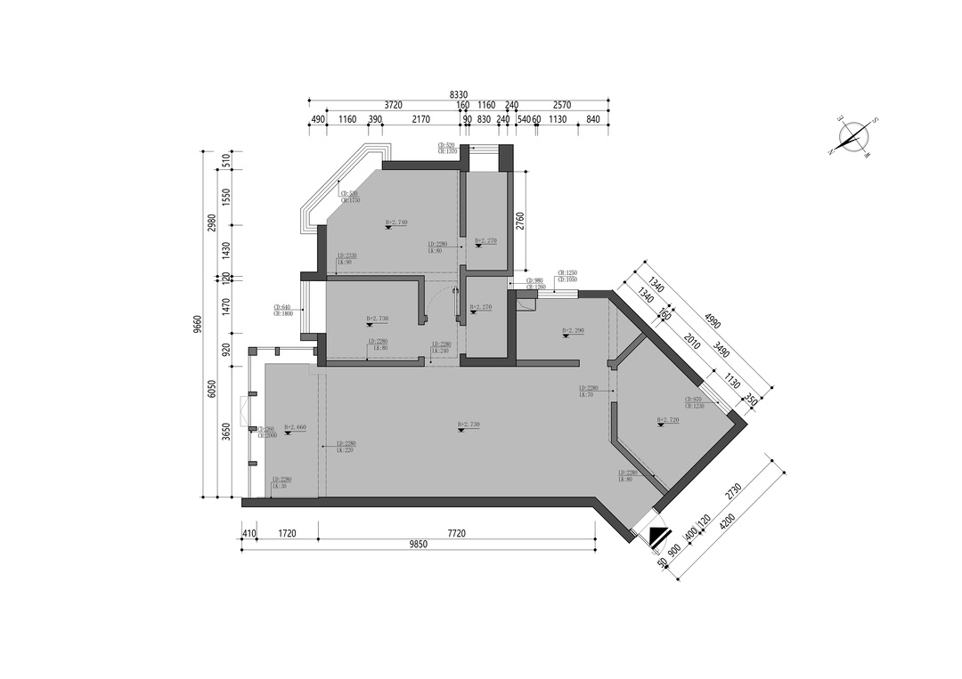 房屋户型是广州高层塔楼的标准状态,大横厅后通过过道衔接卧室空间。原本的房间一共三间,分别属于主卧室、书房、客房&储物间。
