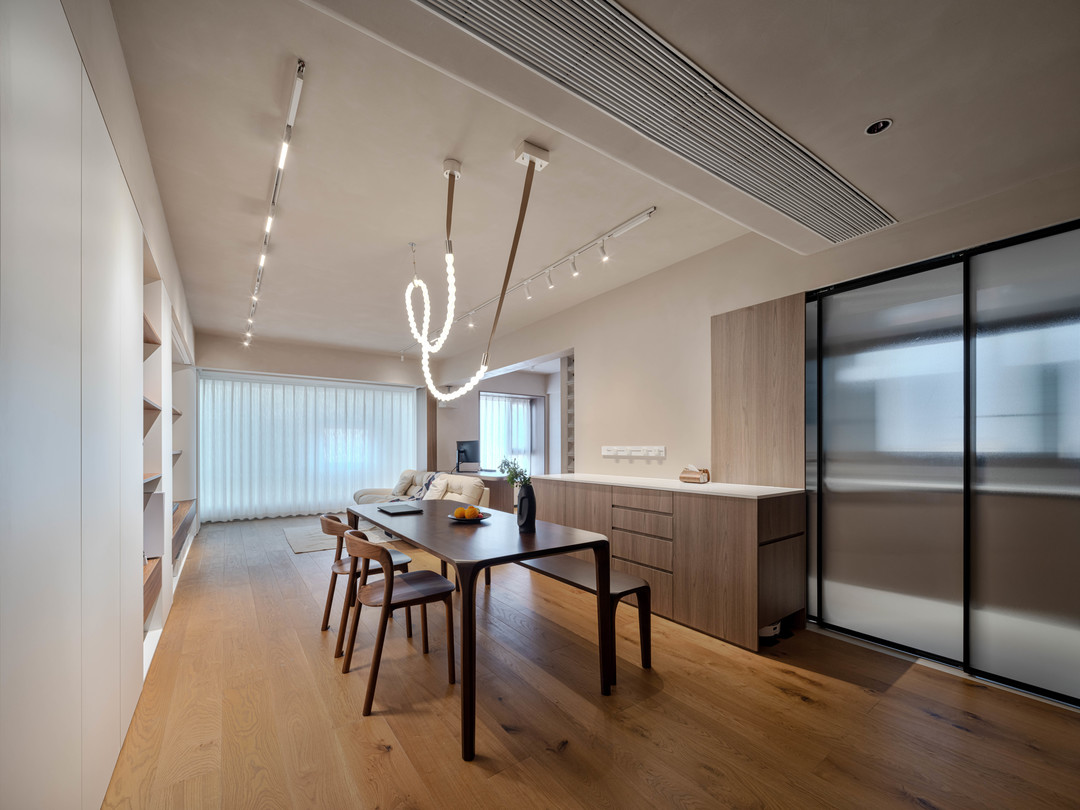于是,这一次设计,我们也试着运用这种酒店设计哲学,为屋主打造闹市中的静谧居所~