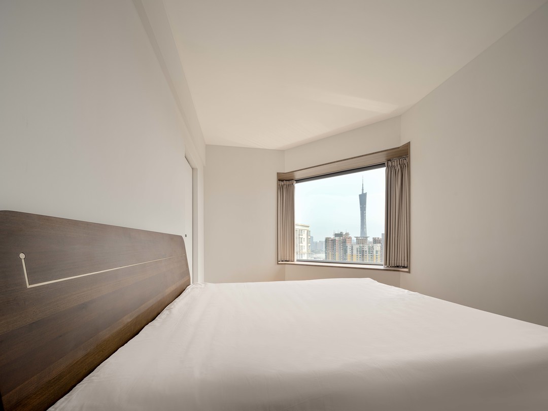 本案位于广州市中心的江景高层,有着超棒的采光与视野,屋主夫妇却想着反其道而行之?希望把空间内的光感弱化,形成安静柔和的氛围。