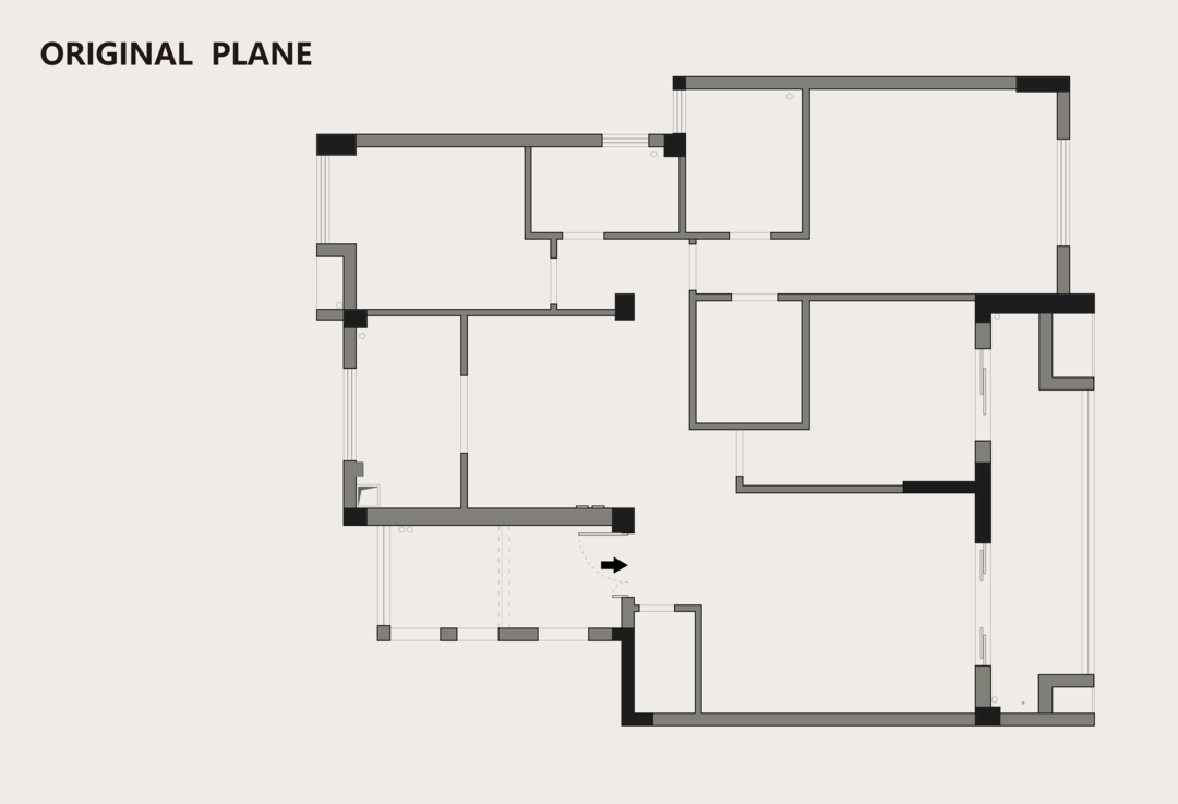 由公共区域的热闹慢慢过渡到安静的区域真是一个很妙的想法,一处温柔的界限,把热闹属性的社交放在外面,客厅倒像是一个掩起来的世外桃源,动静分离在使用时会愈发体会到它的便利,依靠餐厅的走廊做出电视背景,极尽了尺寸的利用,又解决着生活里实际的问题。