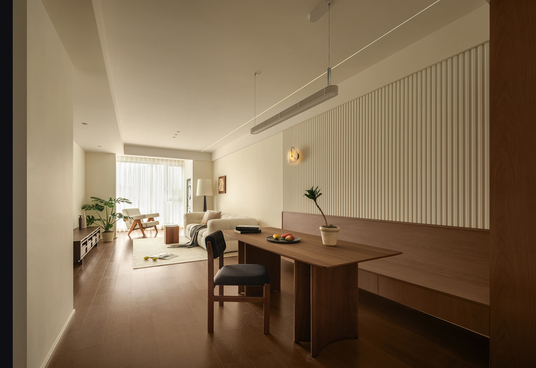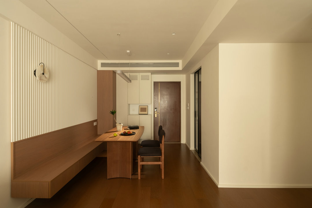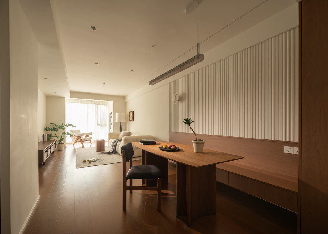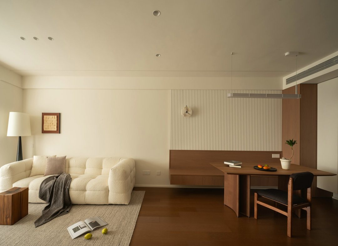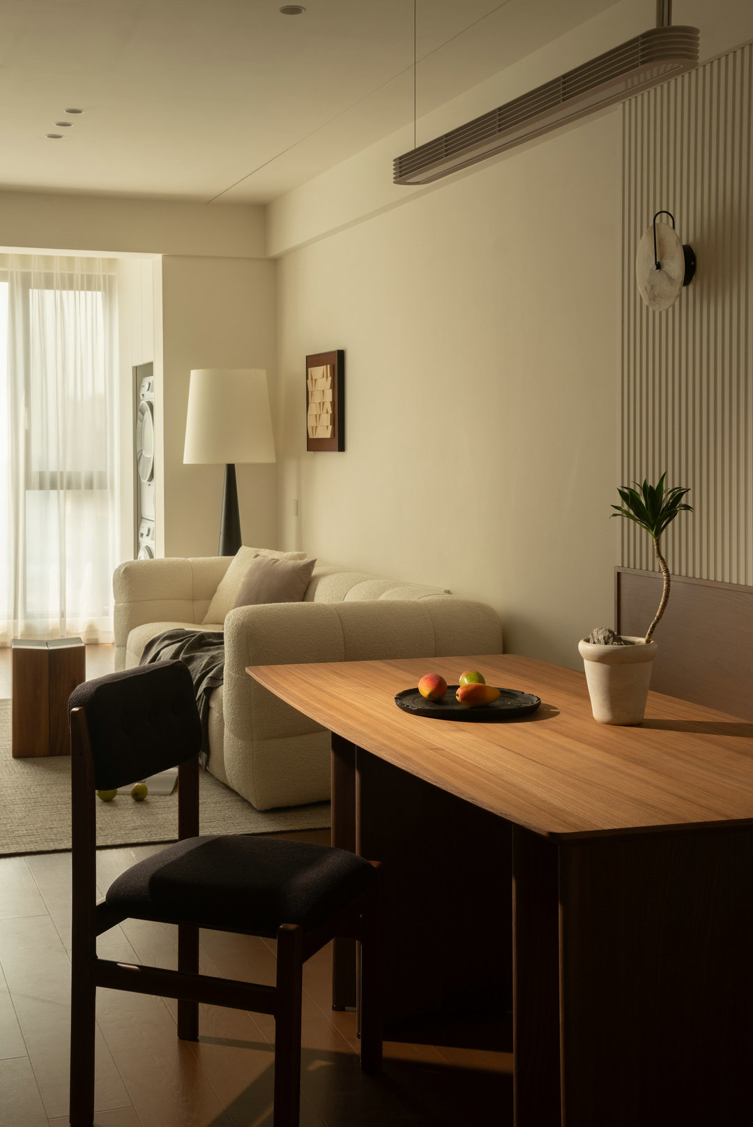 小户型的大气象,让阳光与视线从客厅长驱直入,直至餐厨区域。这不仅放大了空间感,更让家庭的核心区充满了共享性与互动性。无论家人在哪个角落,都能感受到彼此的陪伴。