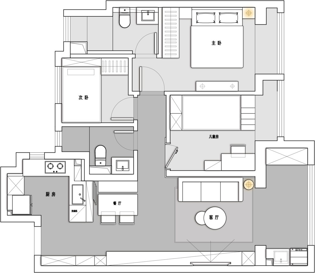 3、儿童房需要休闲树洞区,书桌学习区,睡眠区如何平衡。