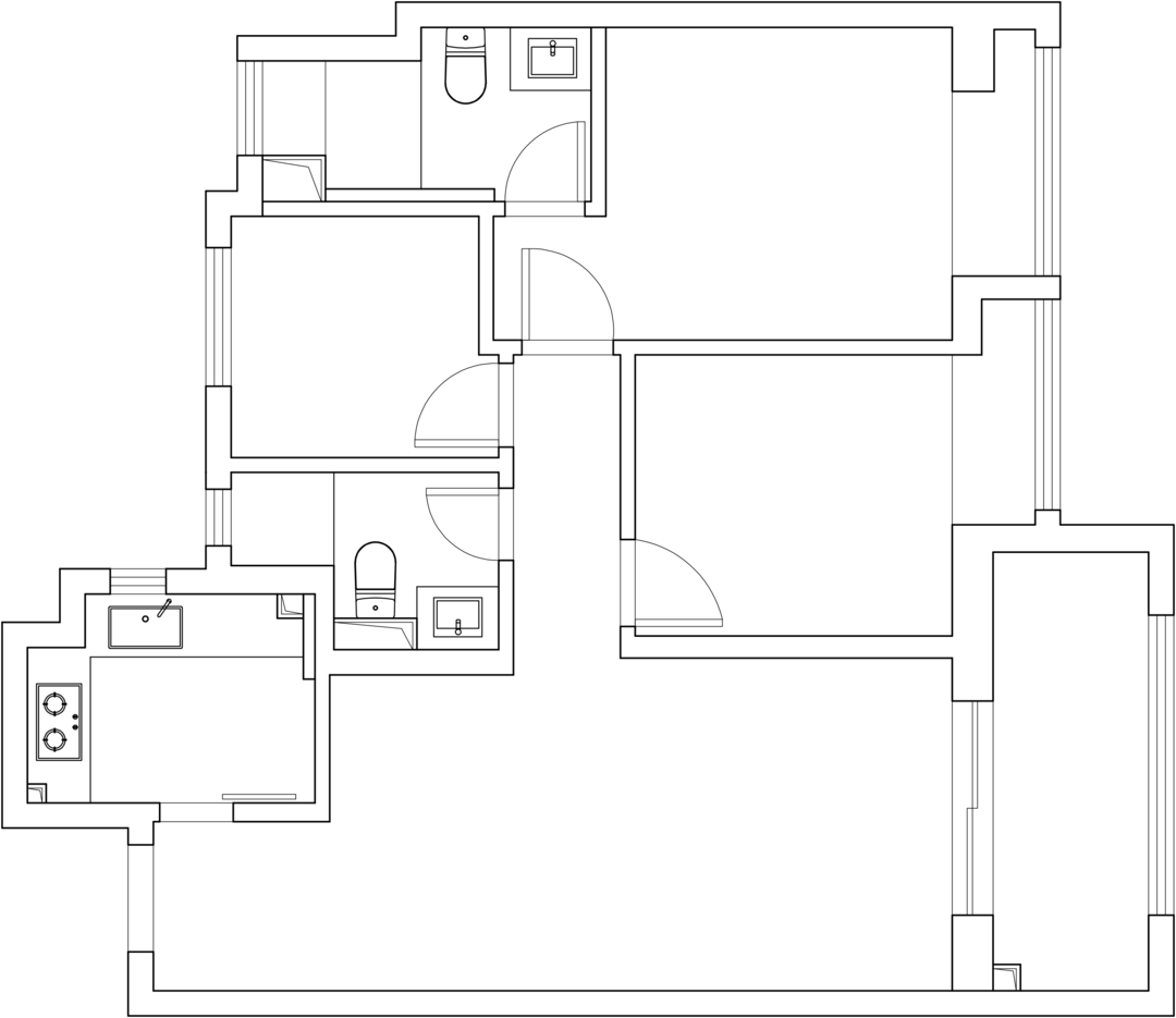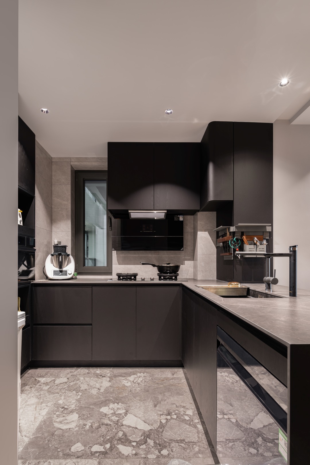 我们首先拆除了厨房与餐厅之间的非承重墙 ,这一步直接打破了 视觉隔断,餐厅的自然光顺势漫入厨房,暗区瞬间亮了起来。