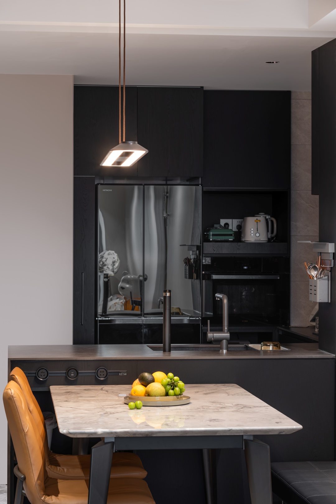 1、在房型允许的情况下拆除原有厨房与餐厅中间的墙体,打开厨房与餐厅的视觉开阔度,增加中岛放水槽和洗碗机。