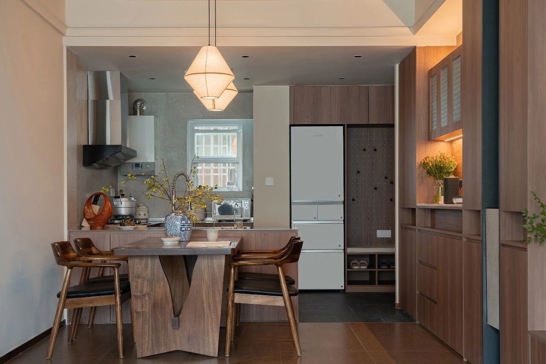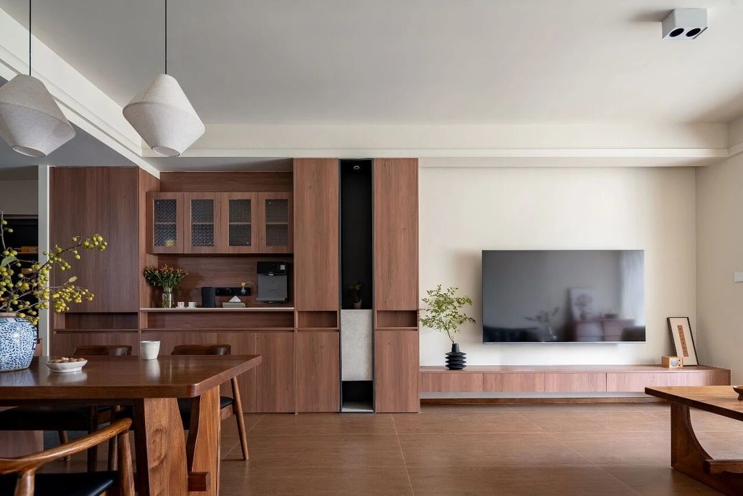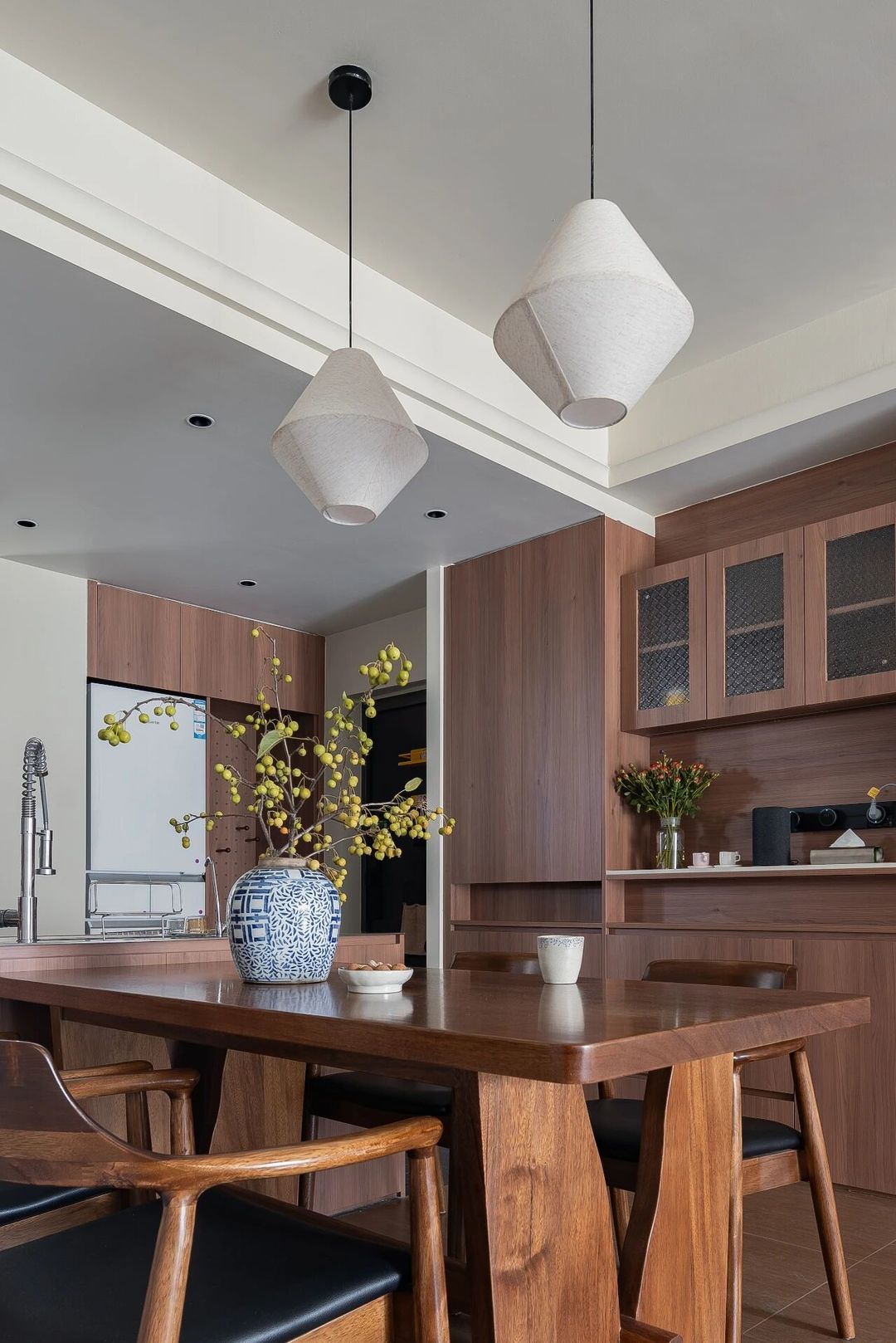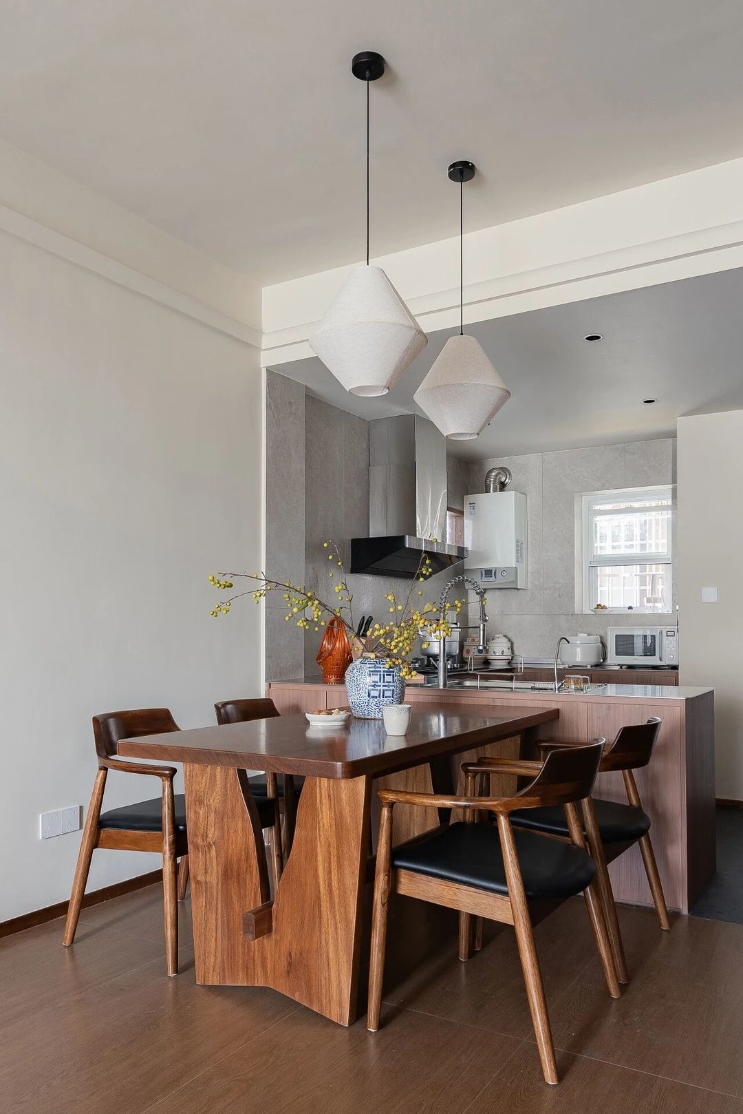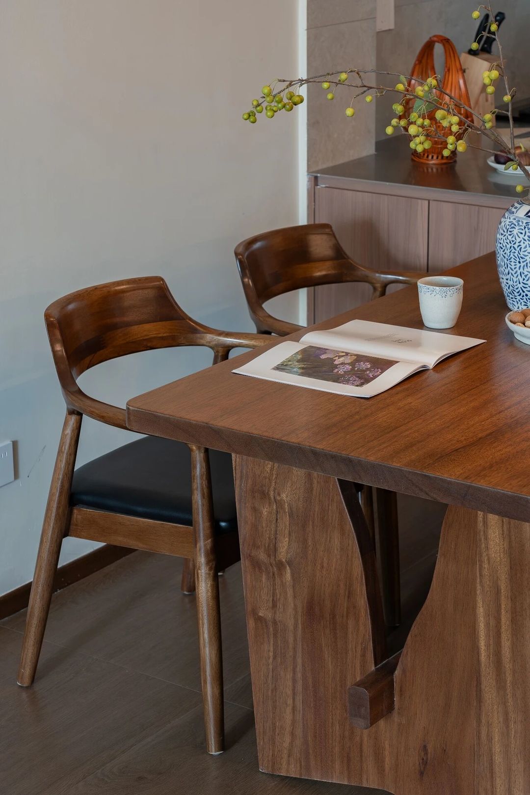 餐厅区域整体选择木质餐桌餐椅,对于父母来说,这样的木质的家具更容易带来情绪上的放松与舒适。