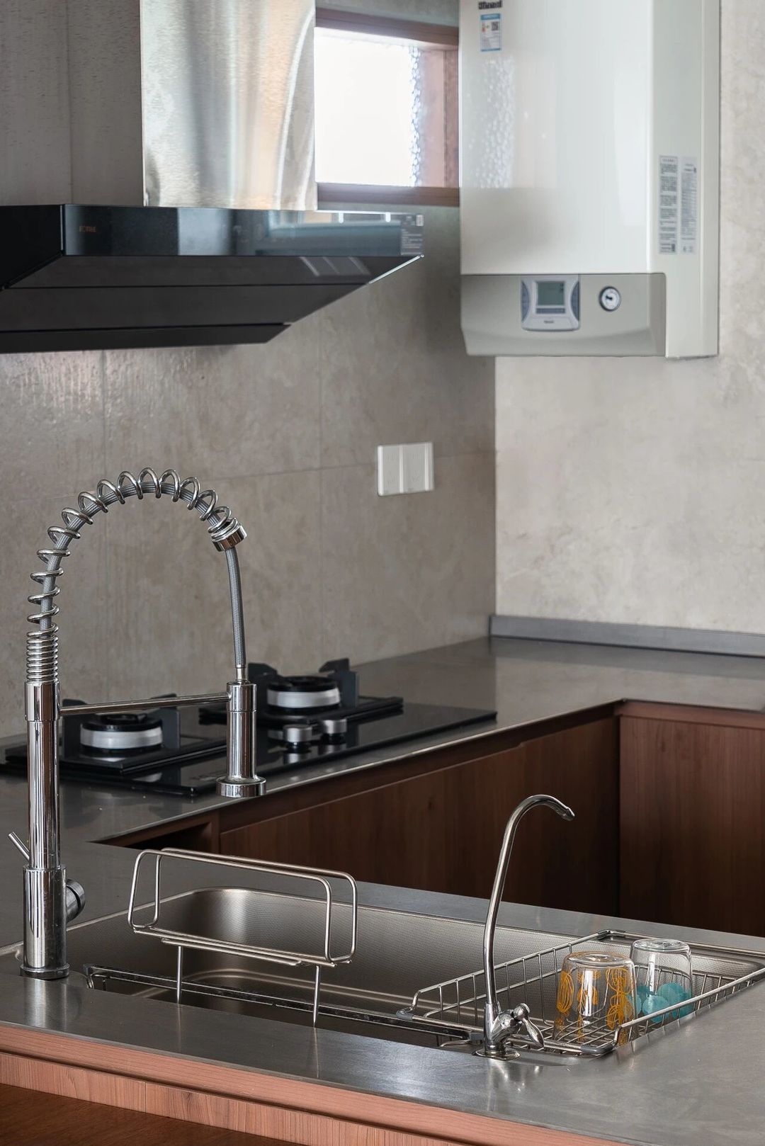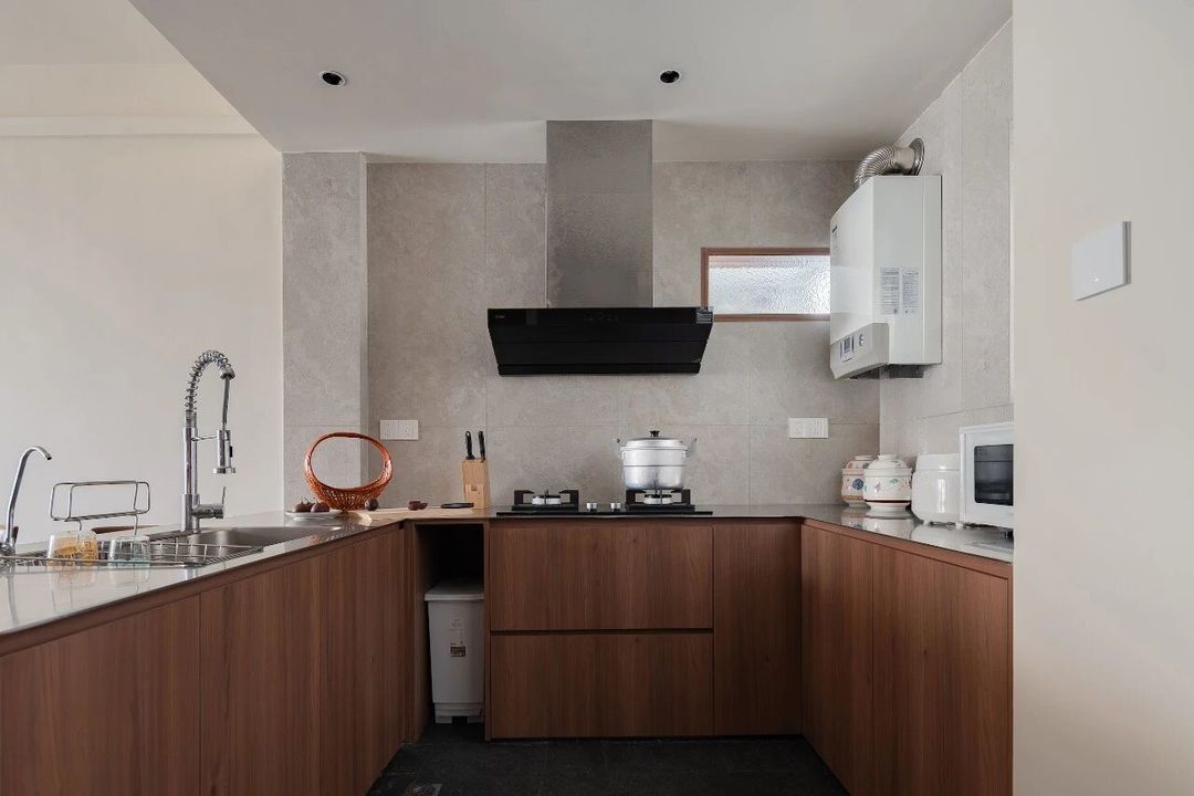 厨房台面选择了不锈钢材质,易打理、质感也非常棒。