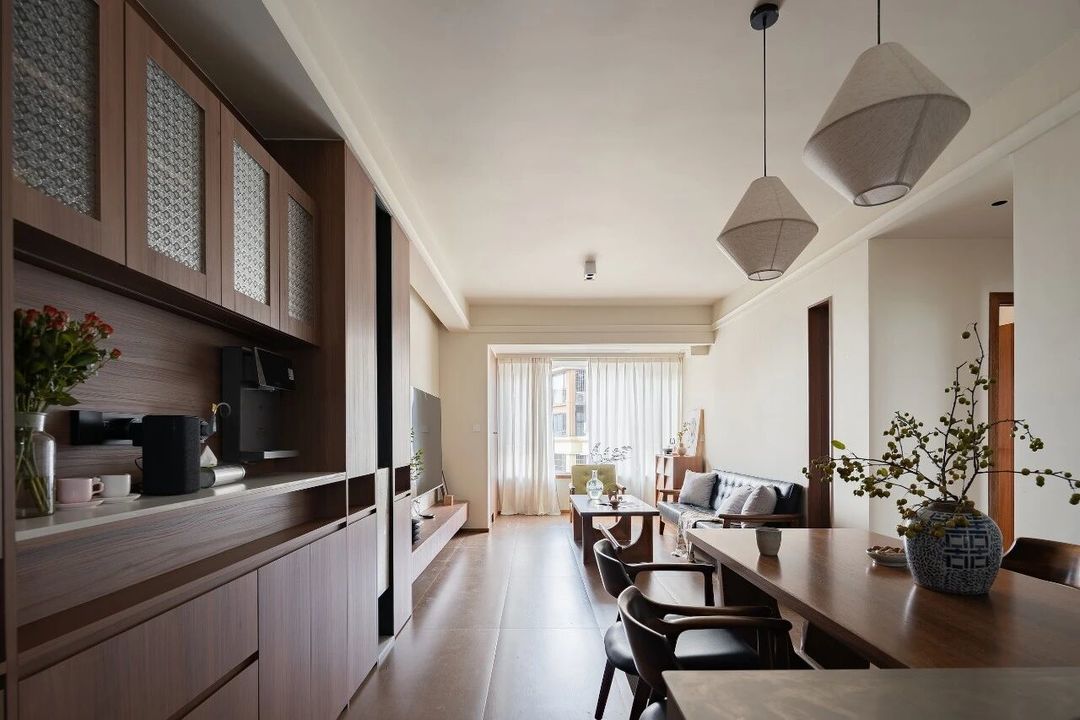 整个餐厅到客厅区域,合理的色彩应用及搭配让整个家呈现出一种安宁和质朴的气息。