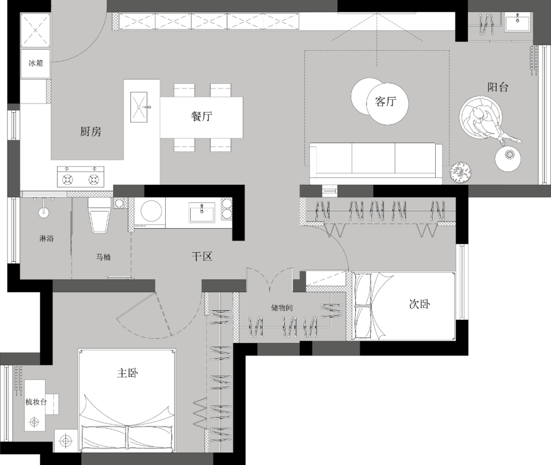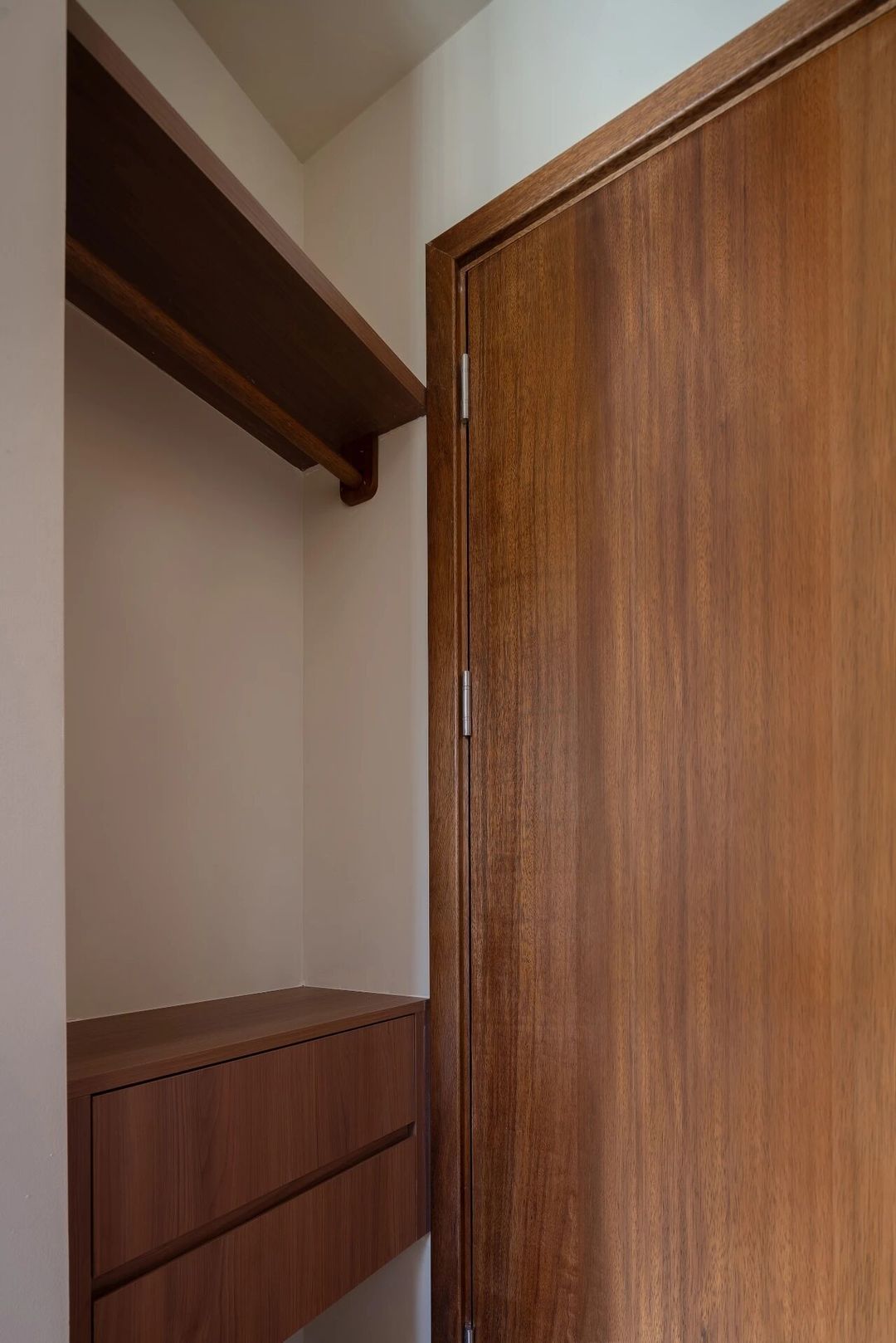 4- 利用原来主卧比较奇葩的空间和一点次卧空间在过道尽头设计了一个小小的储物空间,增加独立的收纳空间;