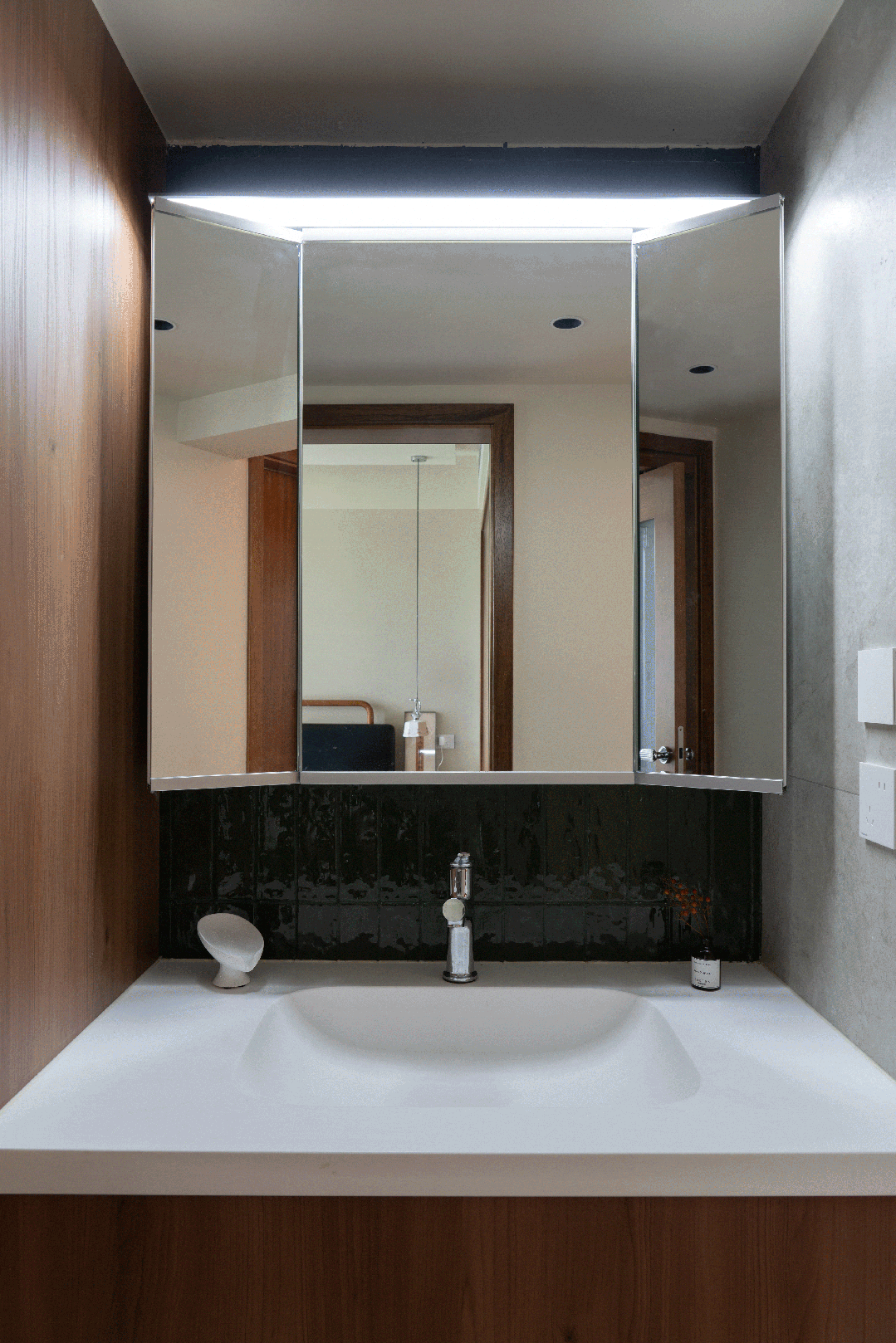 镜柜选择了国产的三折叠树脂镜柜,重点讲一讲这款各年龄段友好的产品: