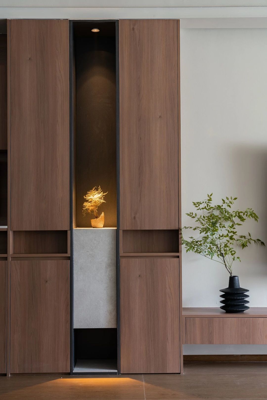 柜体结合老人收纳习惯设计了开放格子及封闭格,同时在柜体之间单独做了造型,打消了整排柜体的厚重感及无趣感。