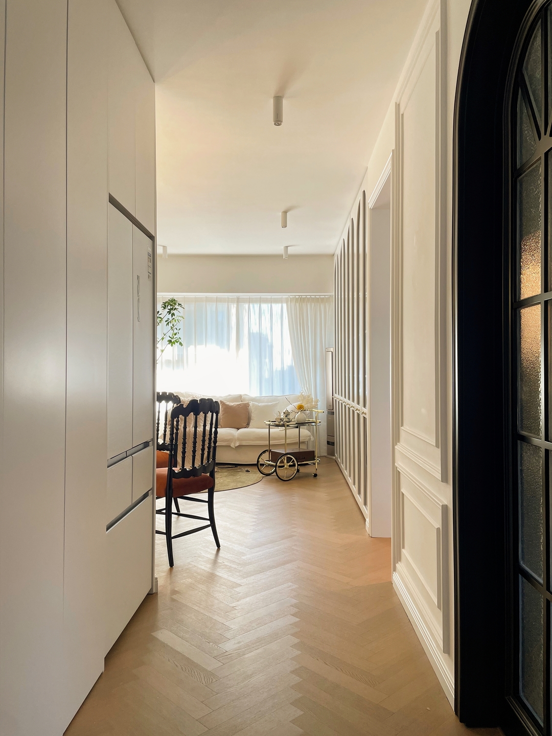 这是一套70平米的一居室空间,屋主是一位单身女性,她希望整个空间是放松的,经过长时间的沟通,最终决定以法式为基础,适当点缀东方的元素