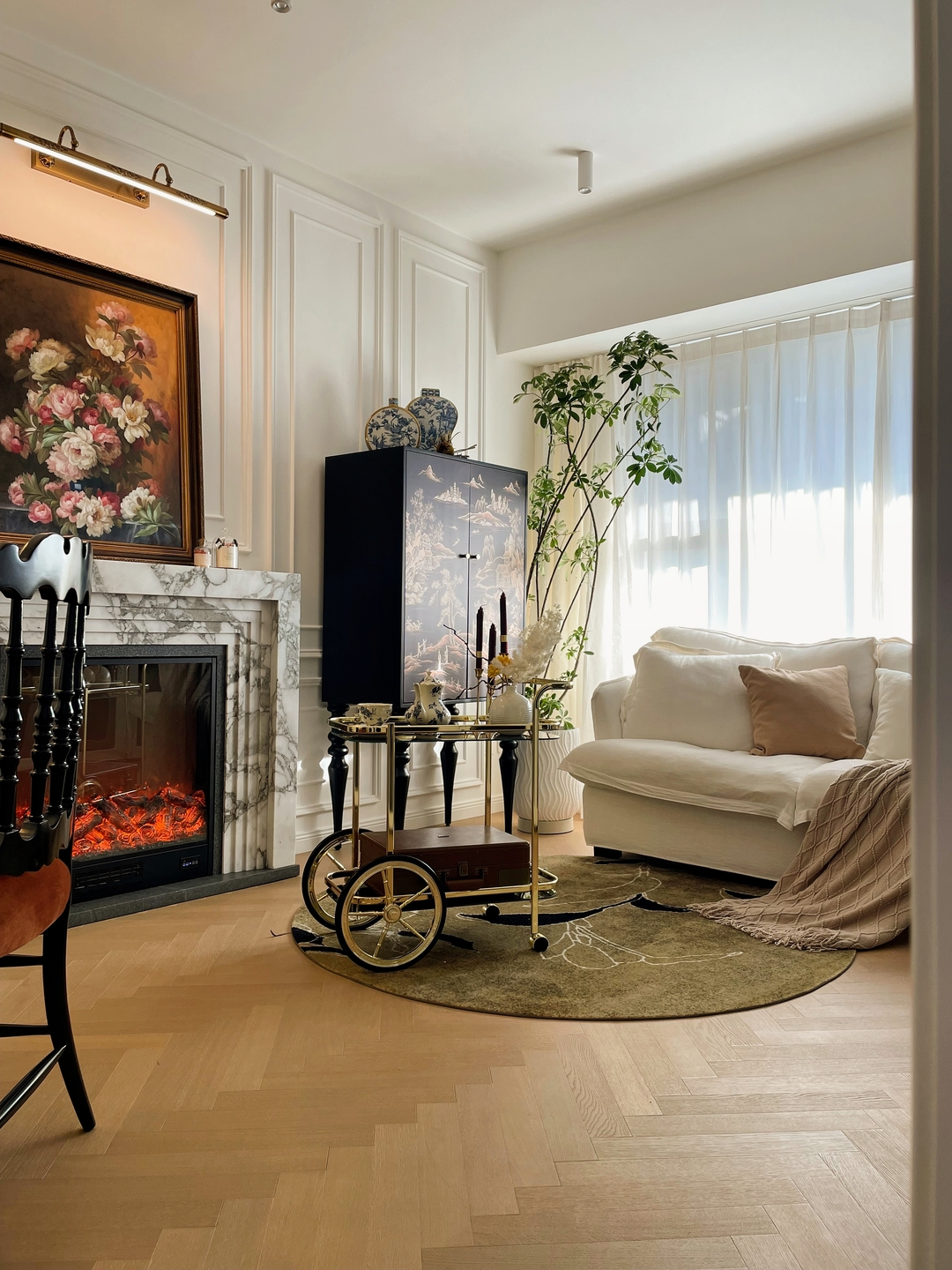 当法式的优雅浪漫遇上中式的古典韵味,整个空间呈现出一种独特的精致与慵懒。
