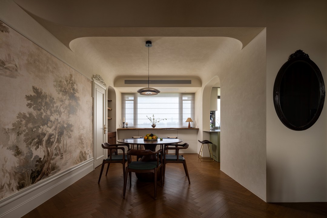 前言: 这套法式中国风美宅,以无阳角的圆弧设计贯穿始终,将法式的浪漫优雅与中式的古朴雅致完美融合,每一个空间都充满了巧思与温情。在这里,建筑不再是冰冷的棱角,而是充满温度的生活容器,承载着业主对生活的热爱与追求,也为我们展示了一种别样的居住美学,无棱有境,生活自有温柔。