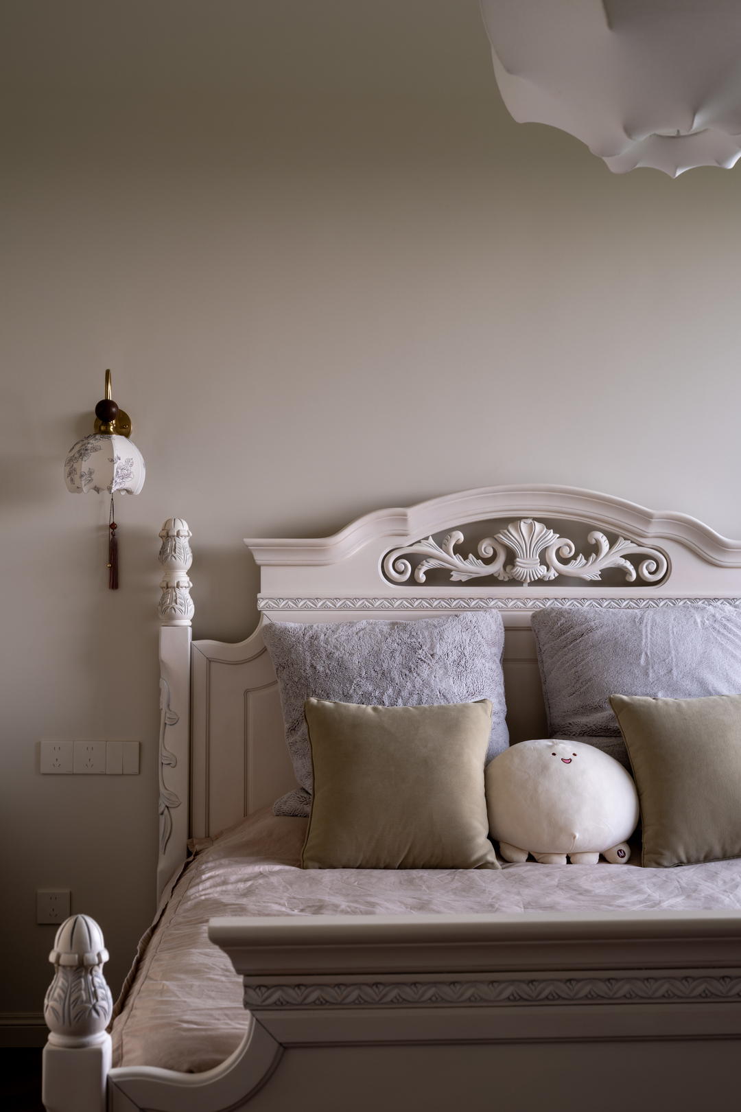 踏入家门,未见棱角先遇柔。入户处所有阳角均以圆弧工艺细腻过渡,顶面亦采用弧线设计,打破传统直角的生硬感,仿佛时光在此处悄然放缓。