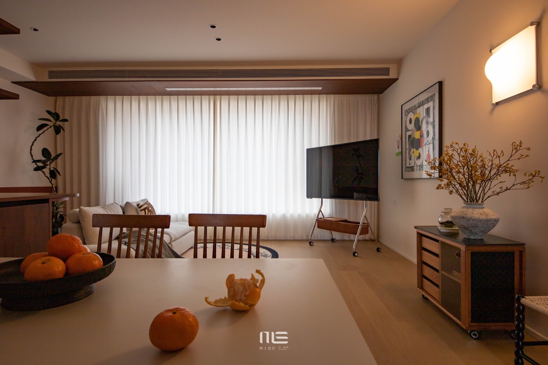 厨房的明净与客厅的温吞共生,在原木与暖光的包裹中,日子过得像一首慵懒的诗,每一寸都写满“家该有的模样”。
