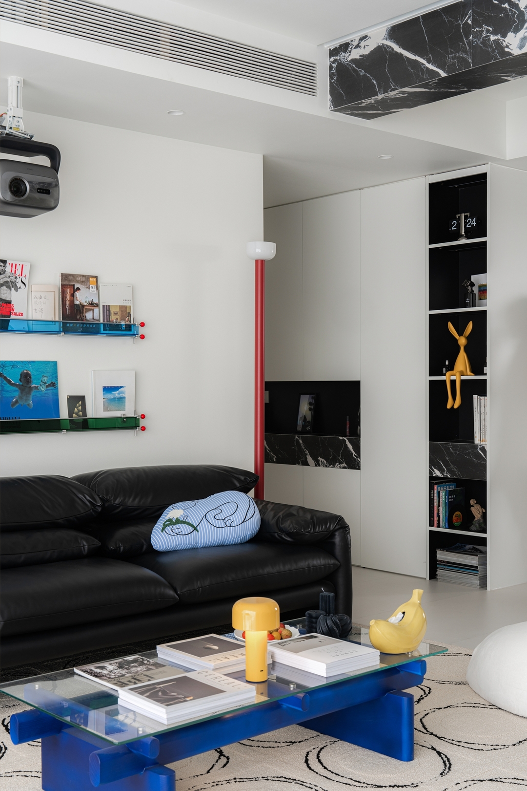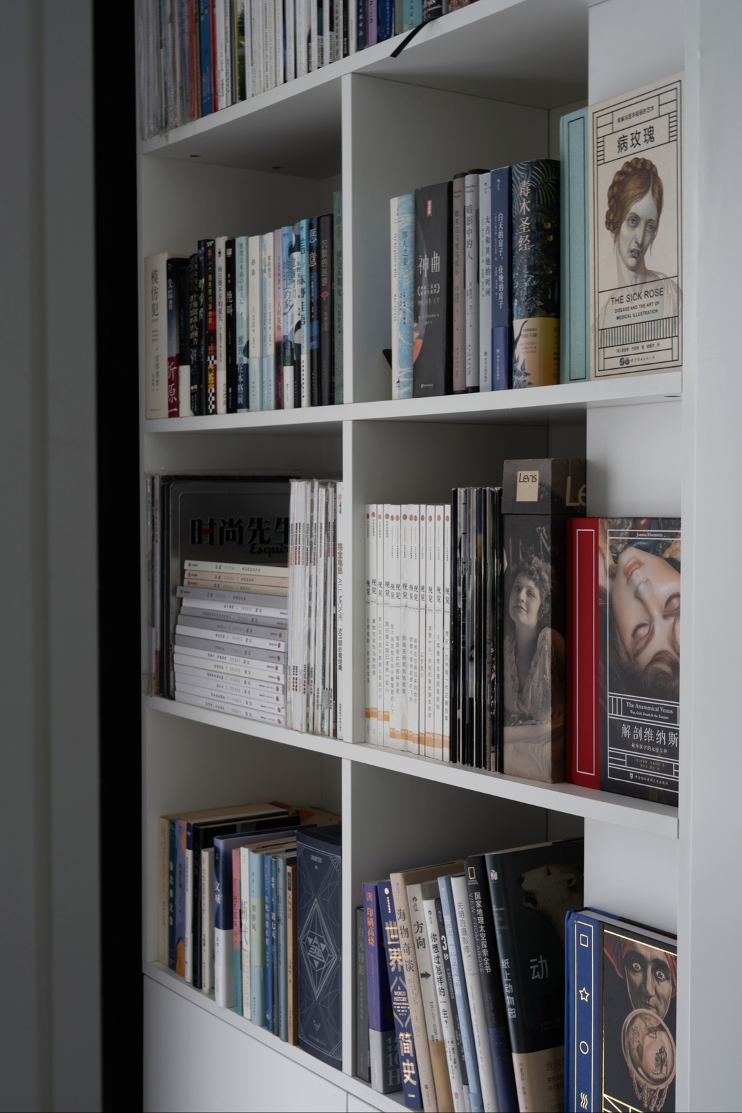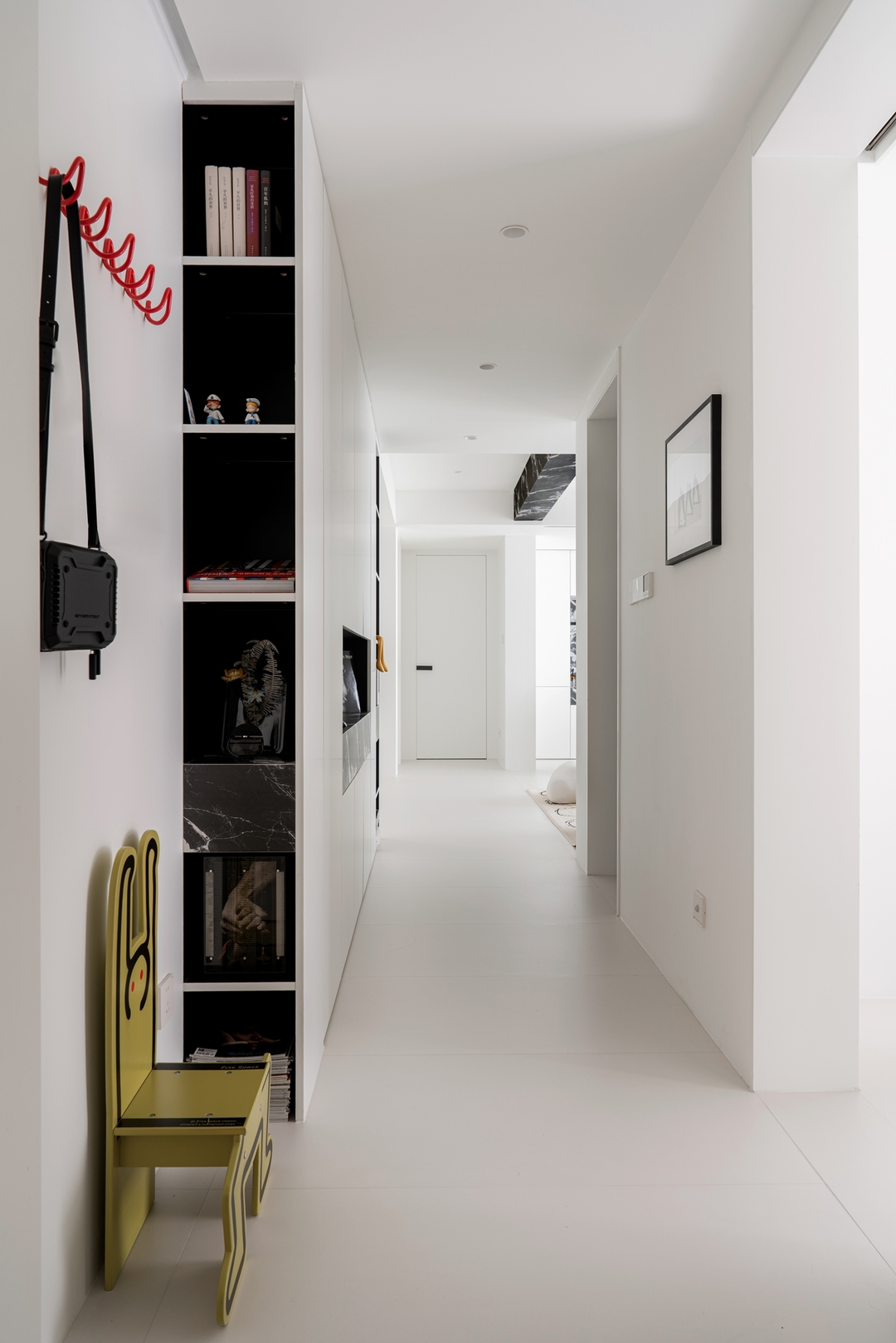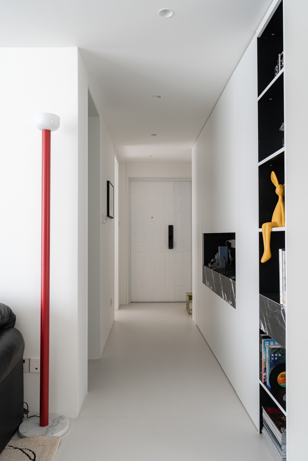 换鞋区、收纳柜、开放式收纳格,利落展开,兼顾实用与美观,业主收藏的玩偶、摆件、香薰、香水,被精心陈列。