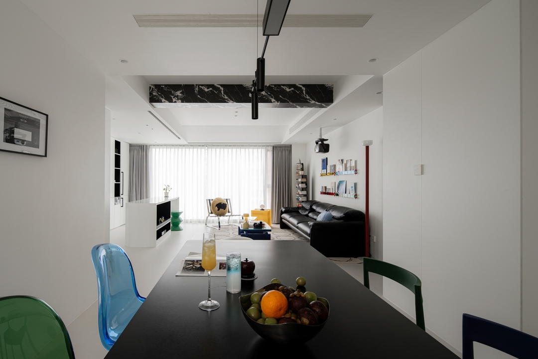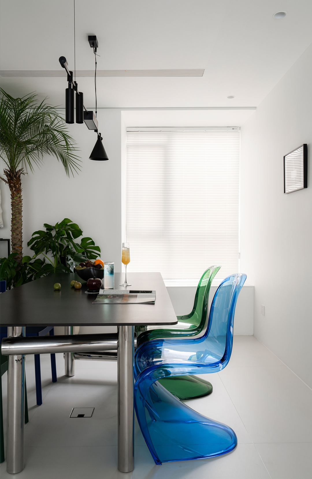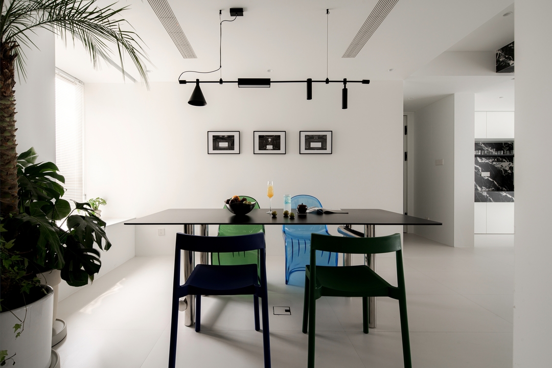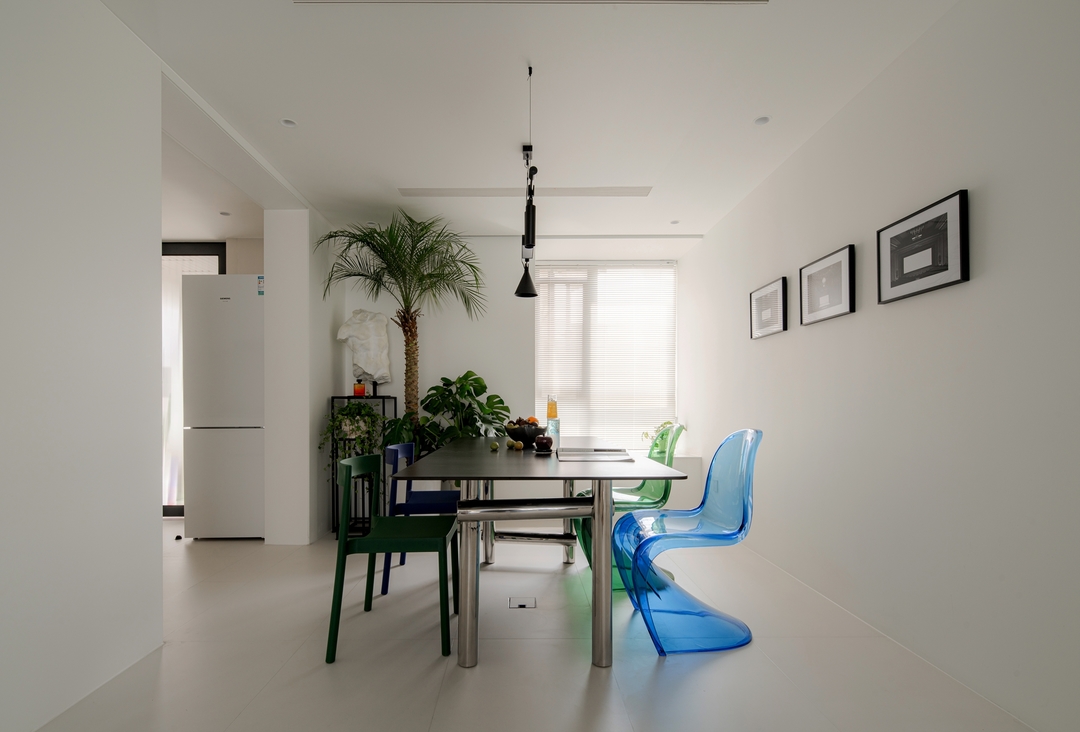 原本的小横厅一分为二,靠近厨房的部分作为餐厅,动线更丝滑。