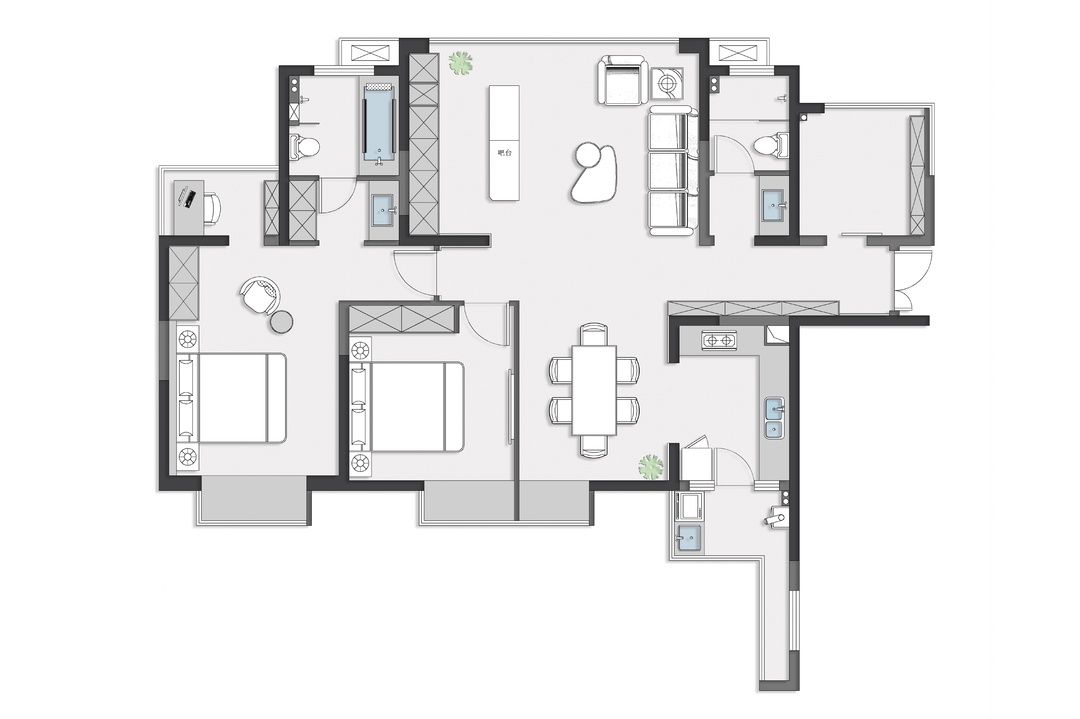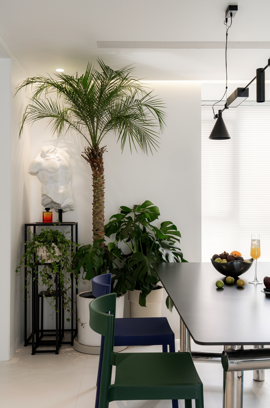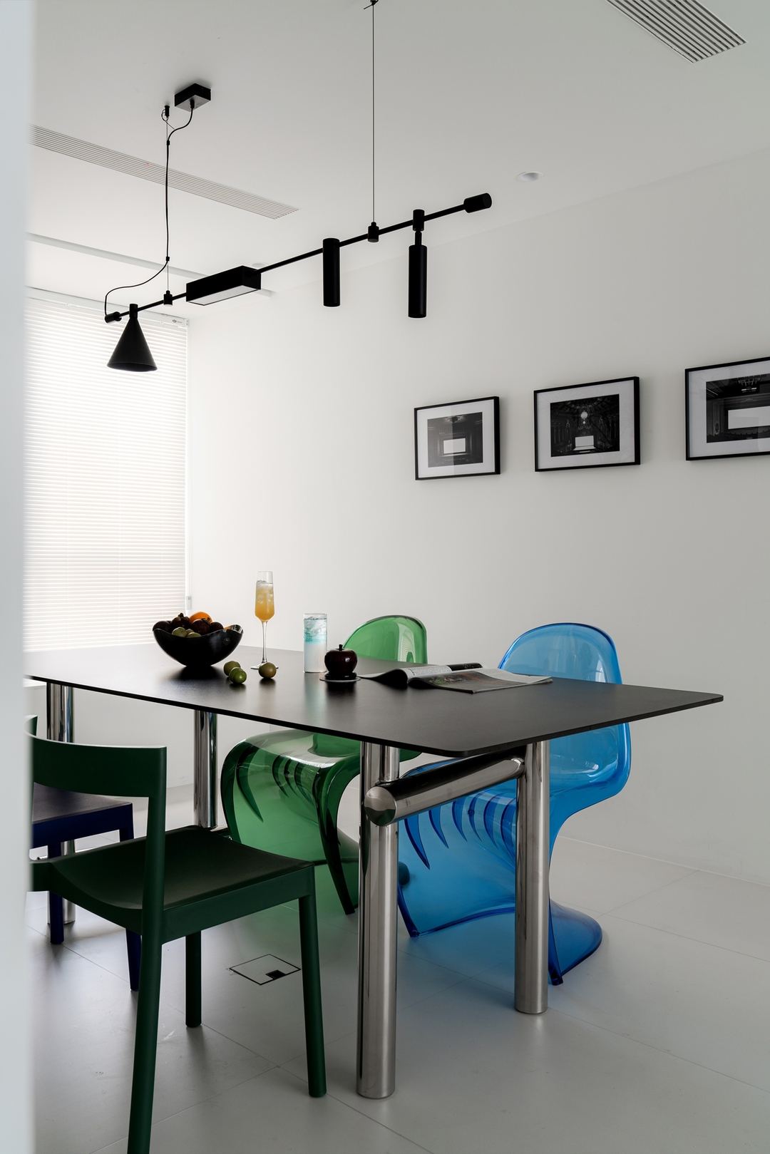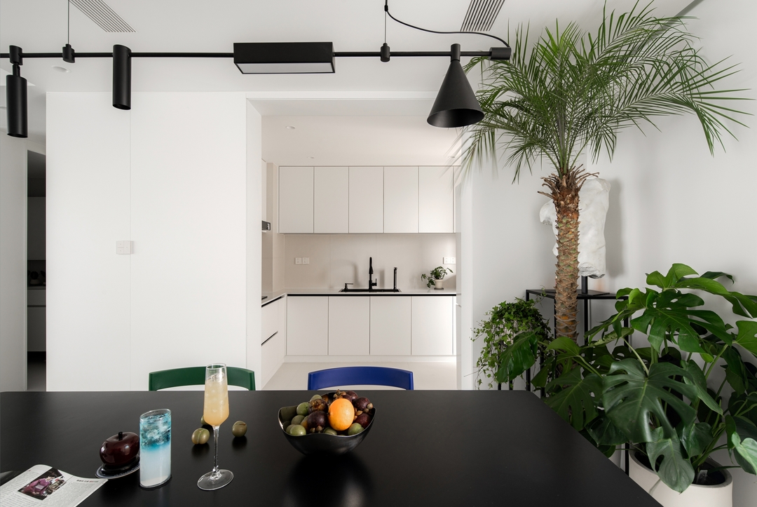 原本的小横厅一分为二,靠近厨房的部分作为餐厅,动线更丝滑。