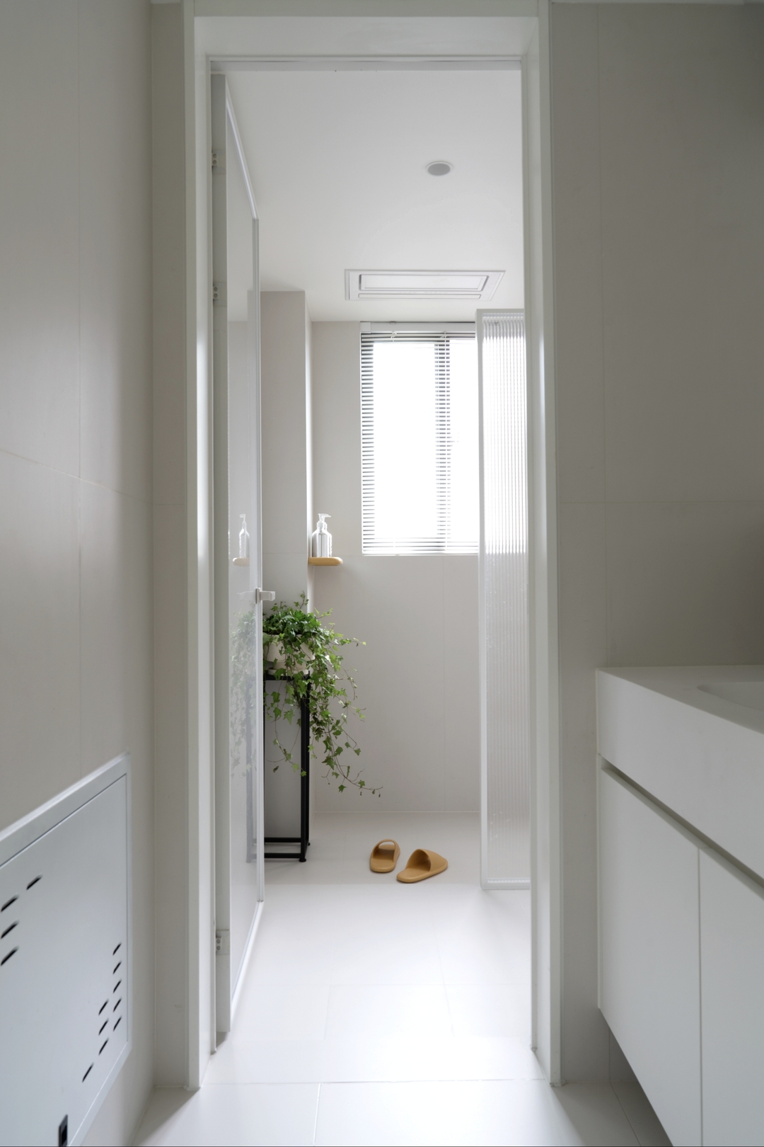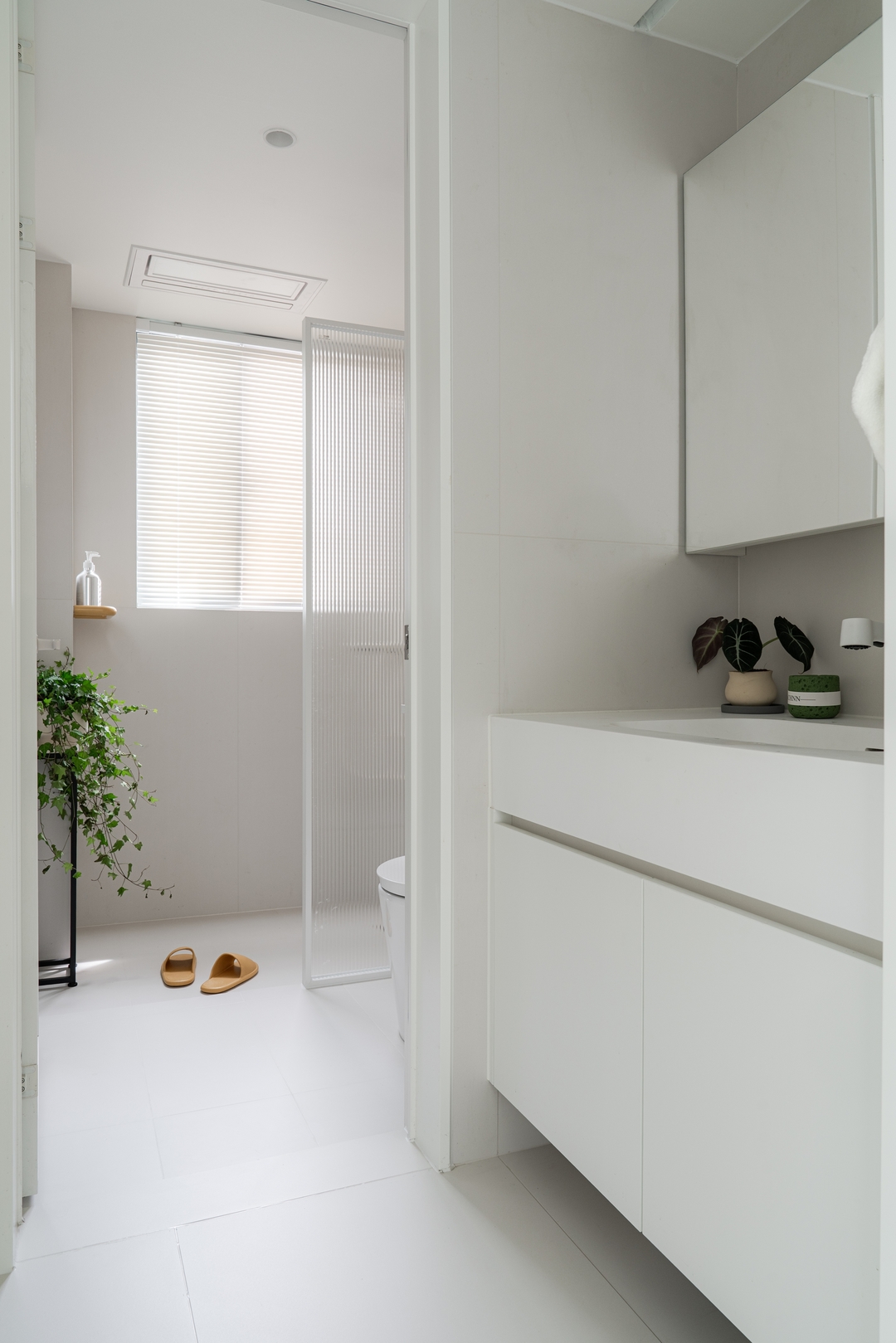飘窗台的原始状态被保留,搭配白色百叶帘,日常小坐或聚会又多了一种浪漫可能。