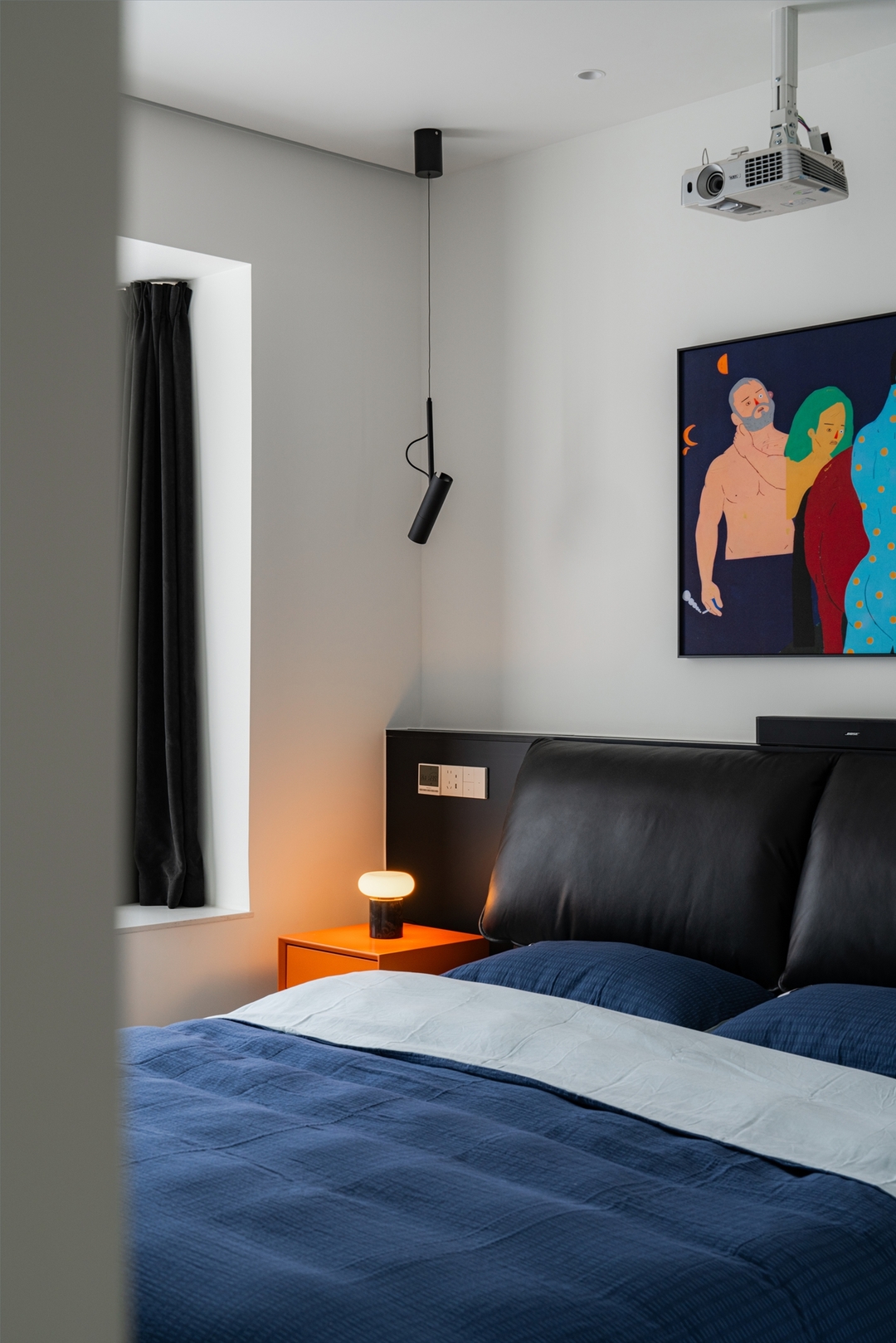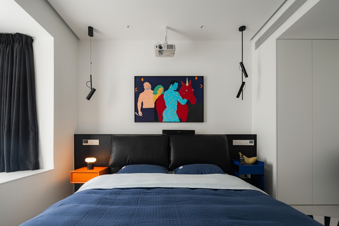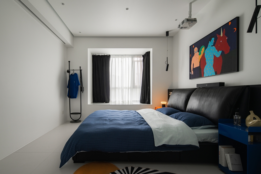 主卧如同一个干净包容的白盒子,把喜欢的多彩元素都和谐地装进来。