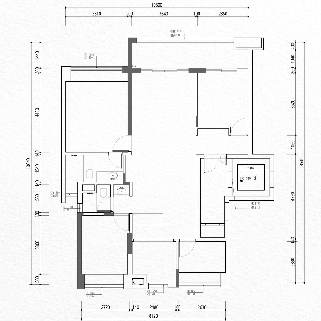 房屋原本是精装房,所以原始户型的格局非常方正,一梯一户,中置客厅,采光合理,户型方正,都是这间户型原本的优点。如果硬要挑出一些问题的话,那便是这两个: