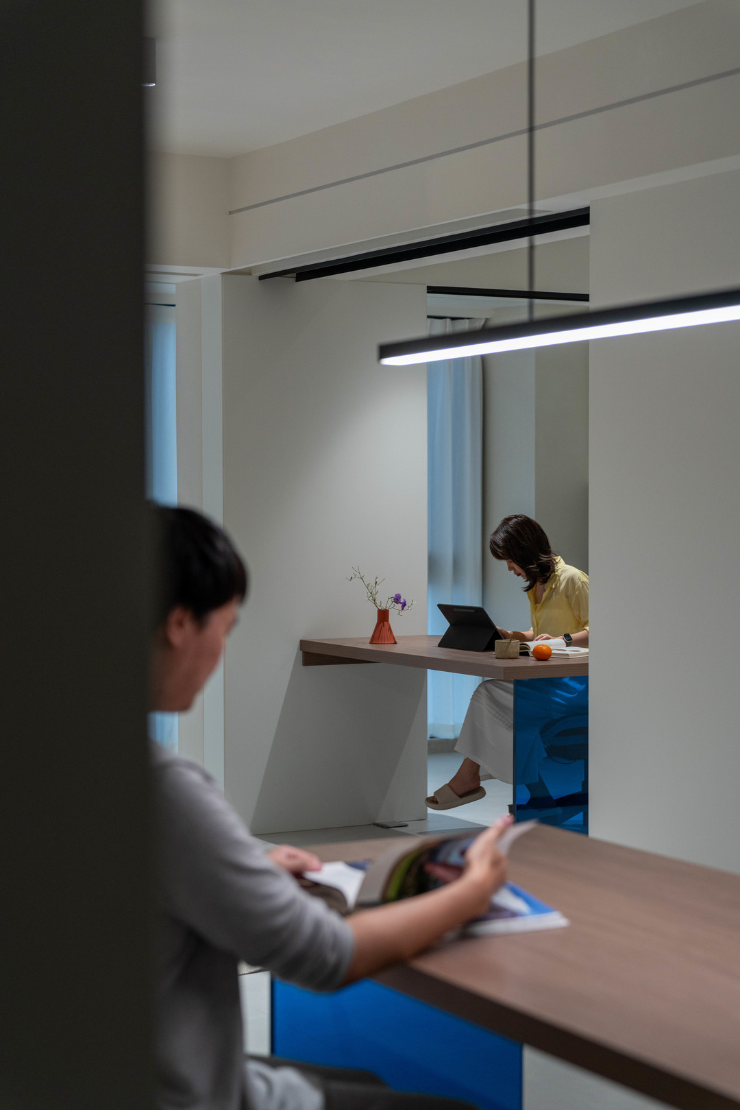 本案的屋主的需求只是轻办公,处理邮件和回复信息,那么开敞的空间感就是至关重要的。