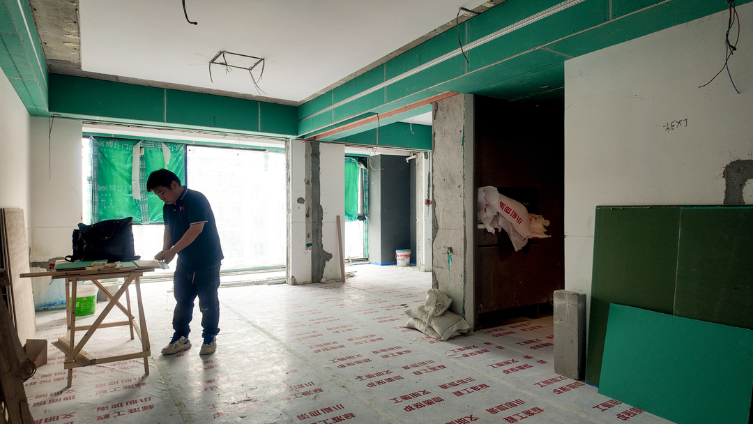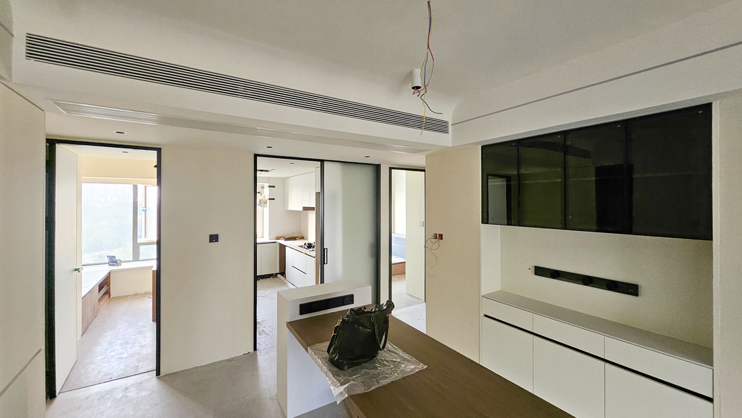 A:遇到的最大挑战其实是来自精装保留,虽然拆除了部分墙体与地砖,但是实际施工中需要装修师傅小心翼翼地改造,避免破坏原本的电路与管线。还有原本精装的中央空调,也是非常小心地拆装下来,重新挪位改造的。