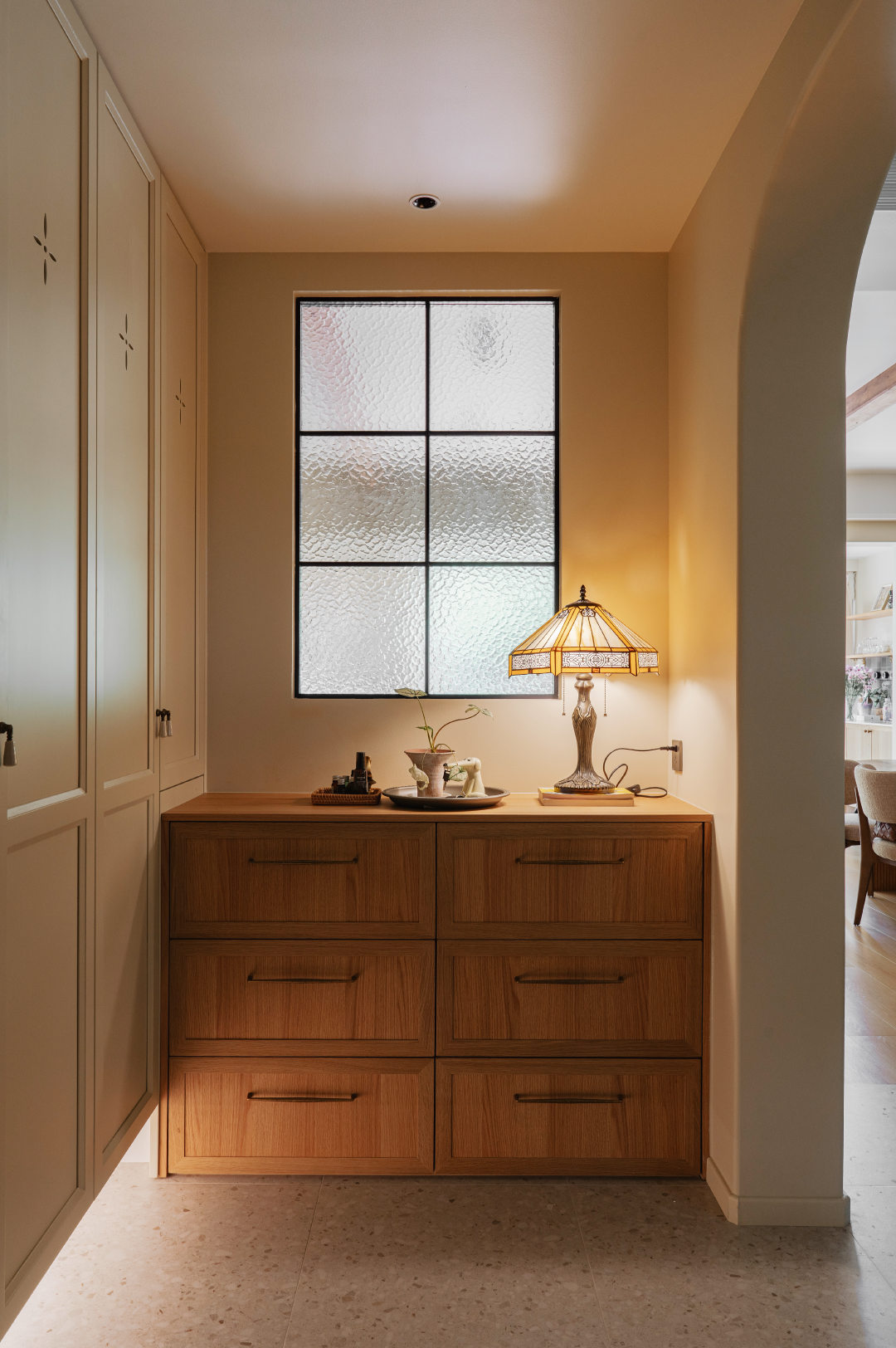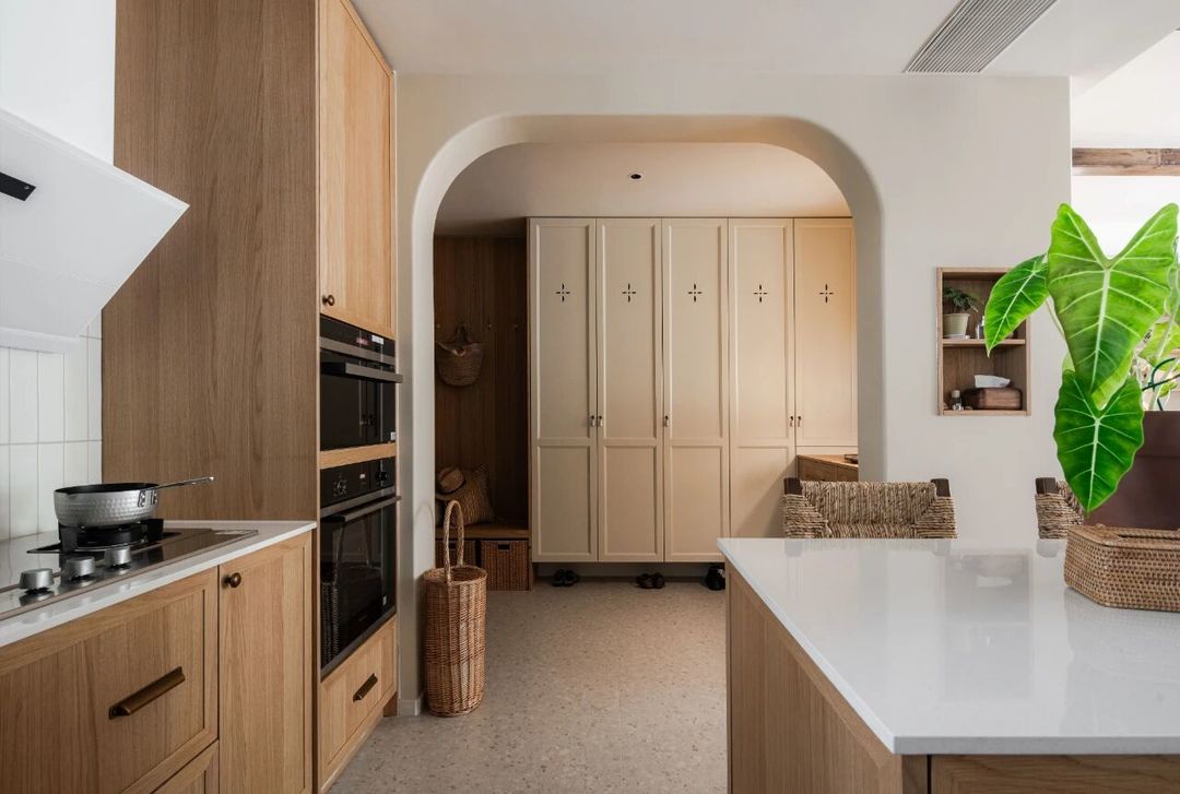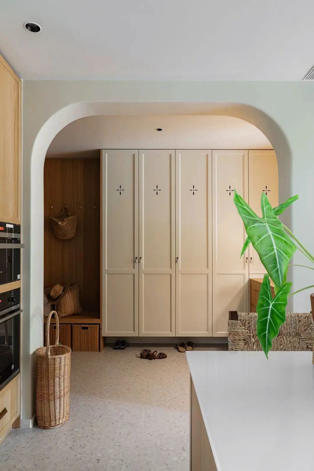 从厨房看向玄关。平拱垭口也给了入户再一次的精致仪式感~