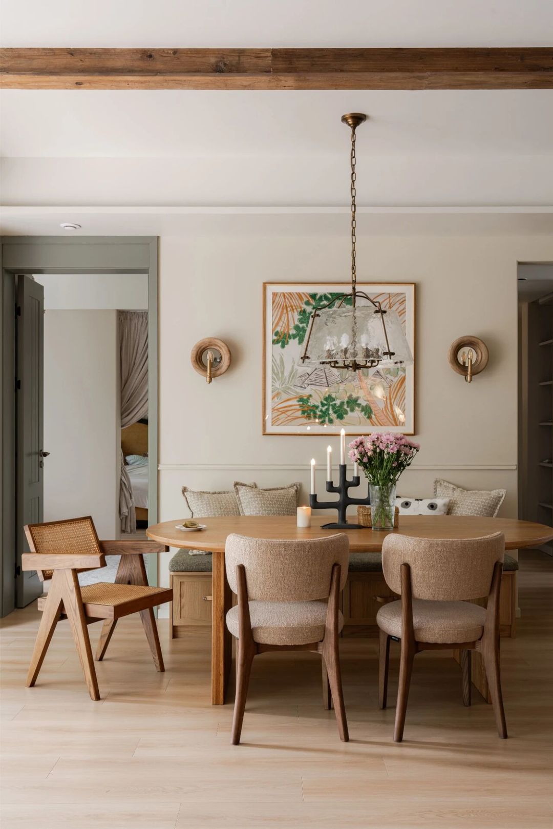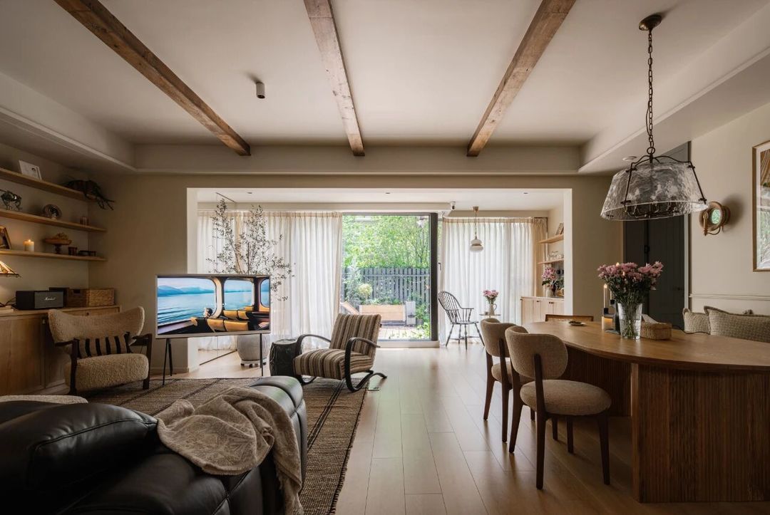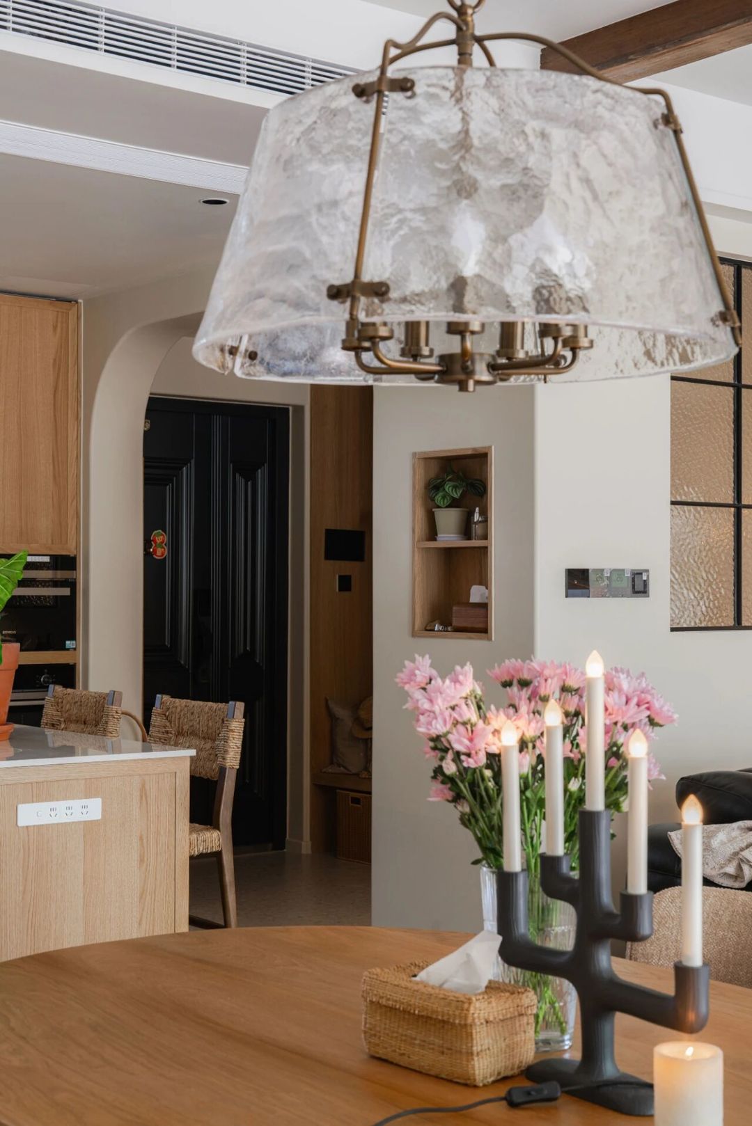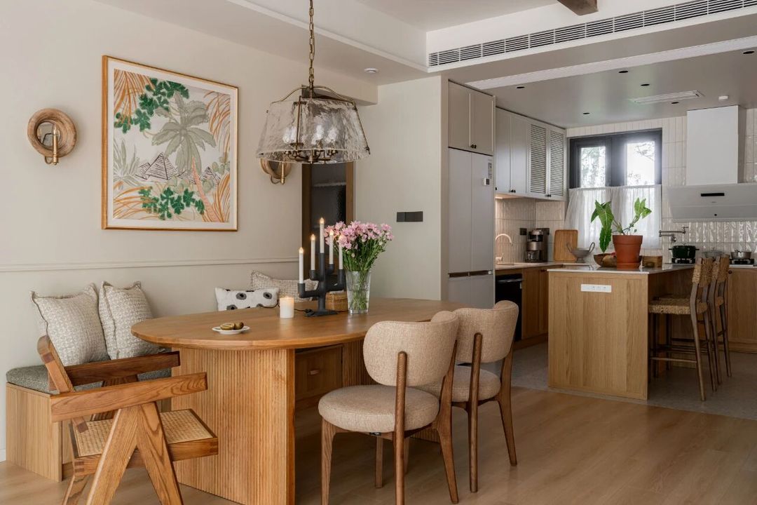 整个餐客厅空间,元素的和谐搭配让家的日常生活与自然痕迹交织在一起。