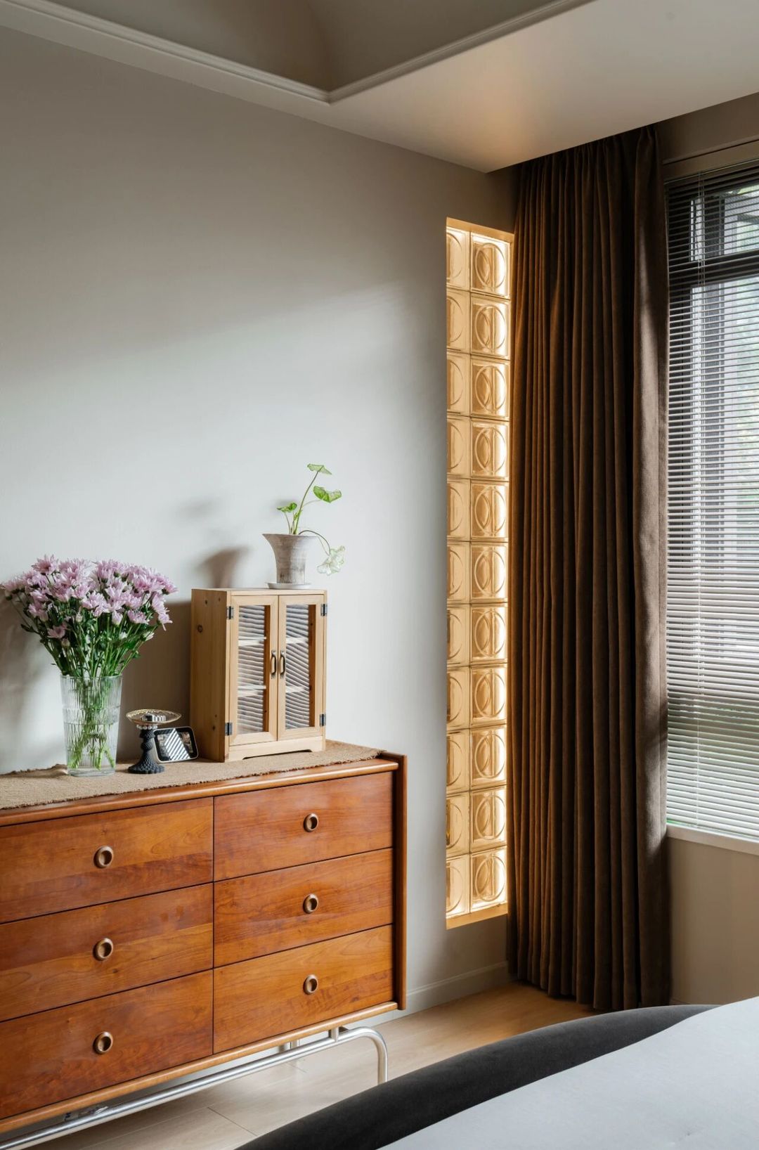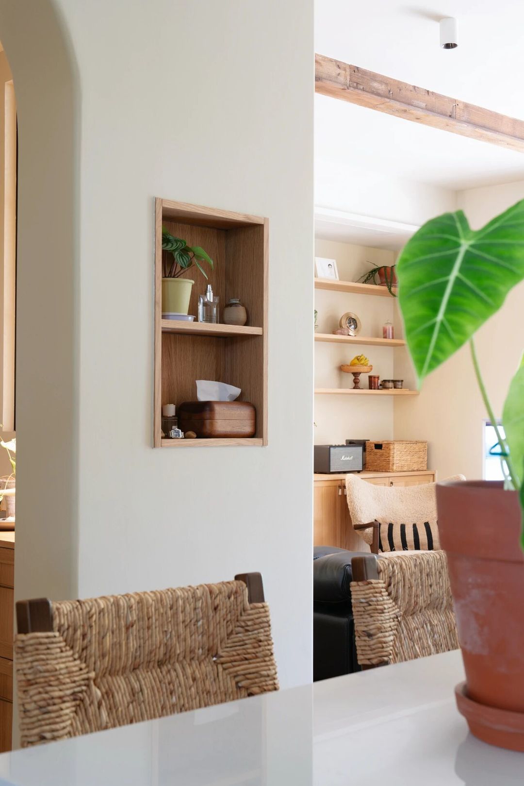 墙面上设计了壁龛可以放置些绿植装饰和常用物件,不仅有一定收纳功能,也给单调的墙面增添了一丝设计感。
