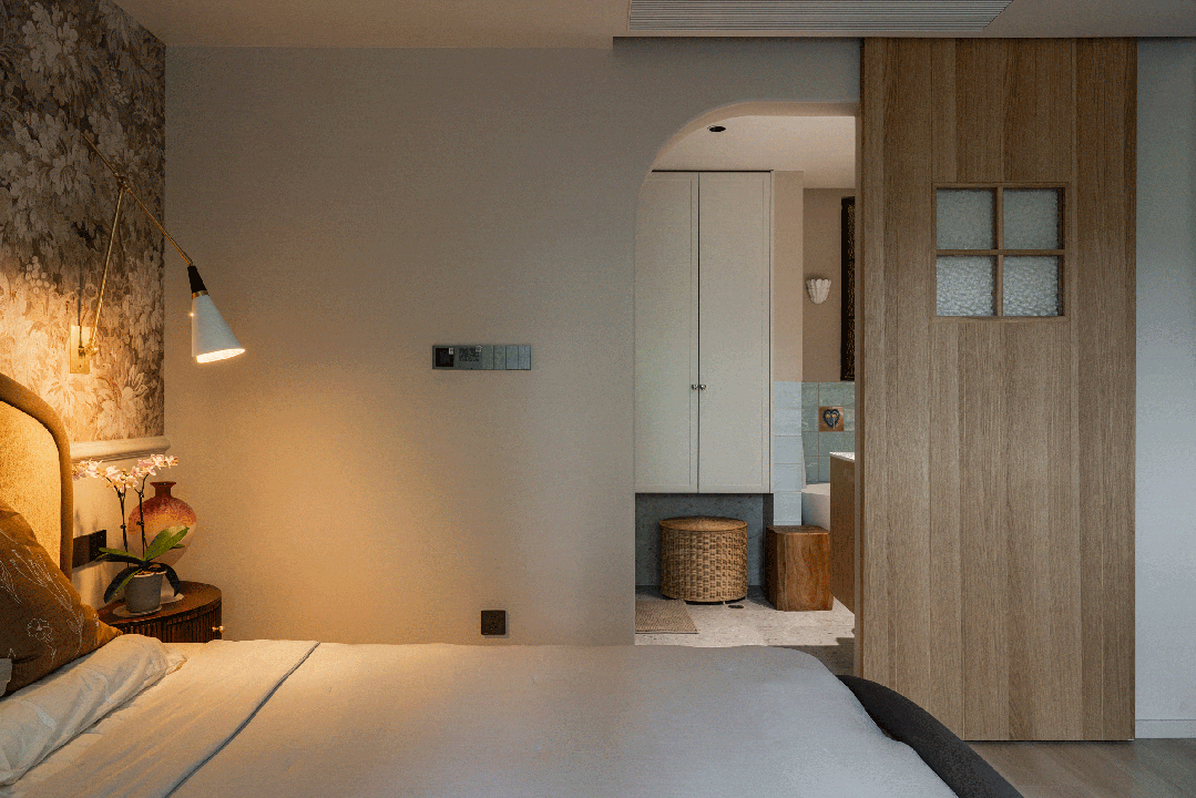 主卧休息区与主卫之间运用推拉门进行隔断。