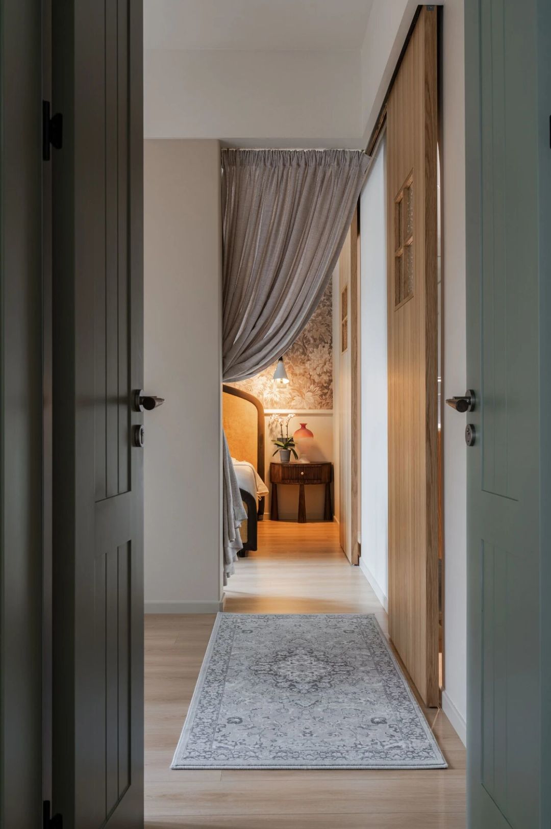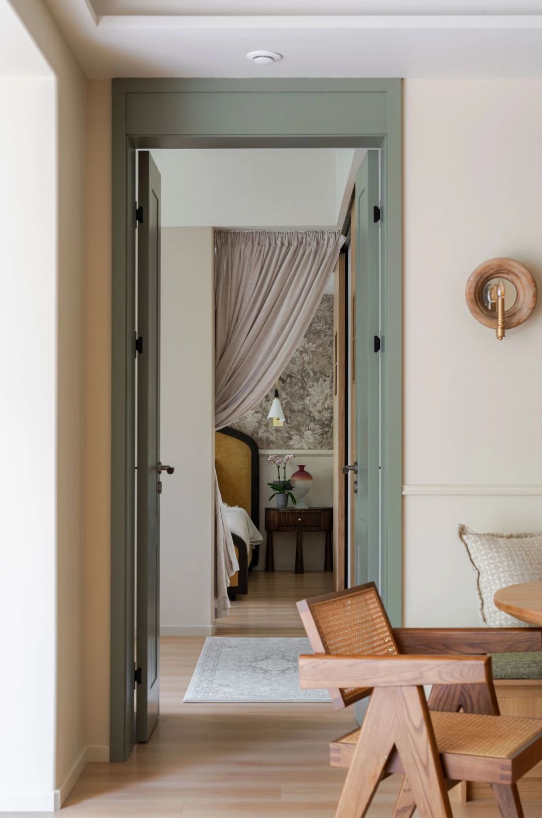 将原先书房的门洞扩大,作为进入大套间的唯一入口。双开门的运用更添入户仪式感。