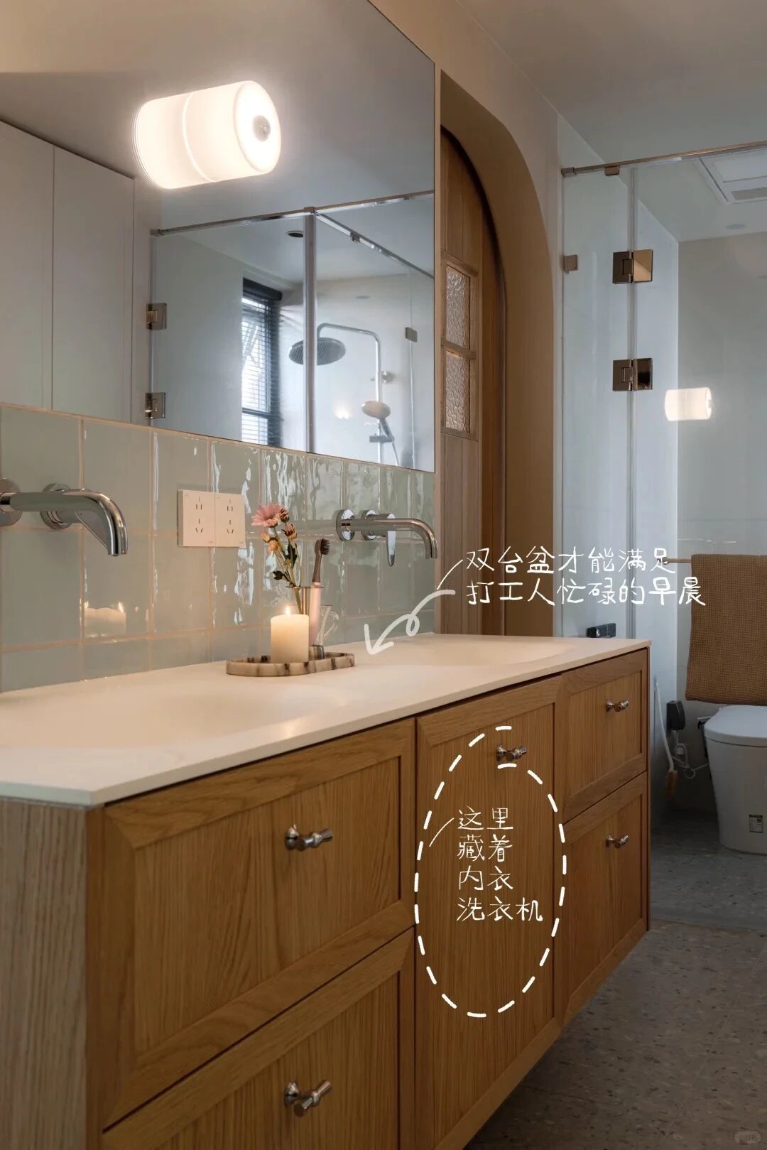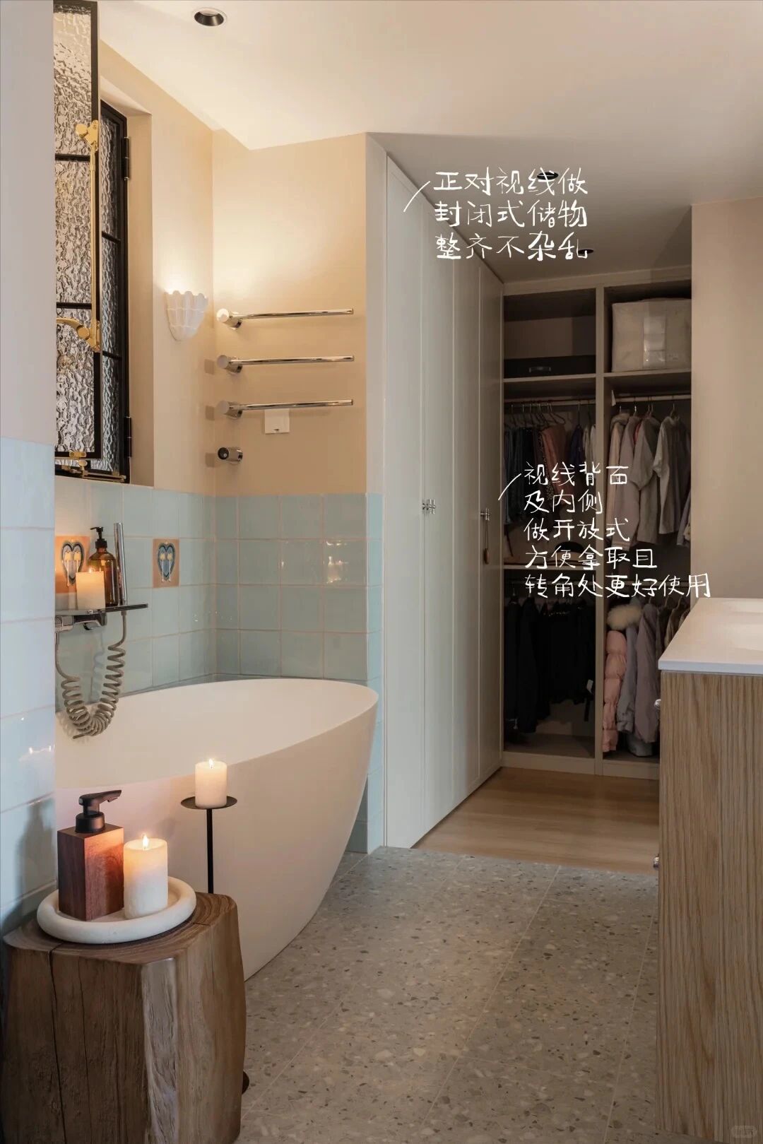 主卫另一侧联动衣帽间,洗漱完拿取衣物不要太顺手太方便~