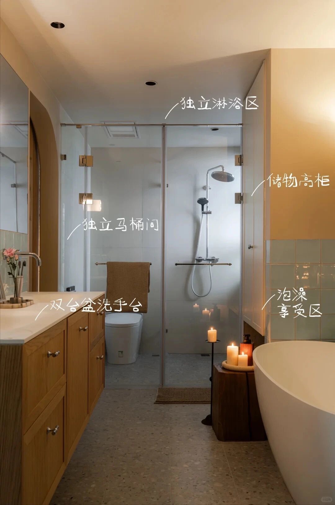史上超豪华的主卫来袭!独立马桶间、独立淋浴、泡澡区、双台盆洗手台全部cover住,就问还有谁~