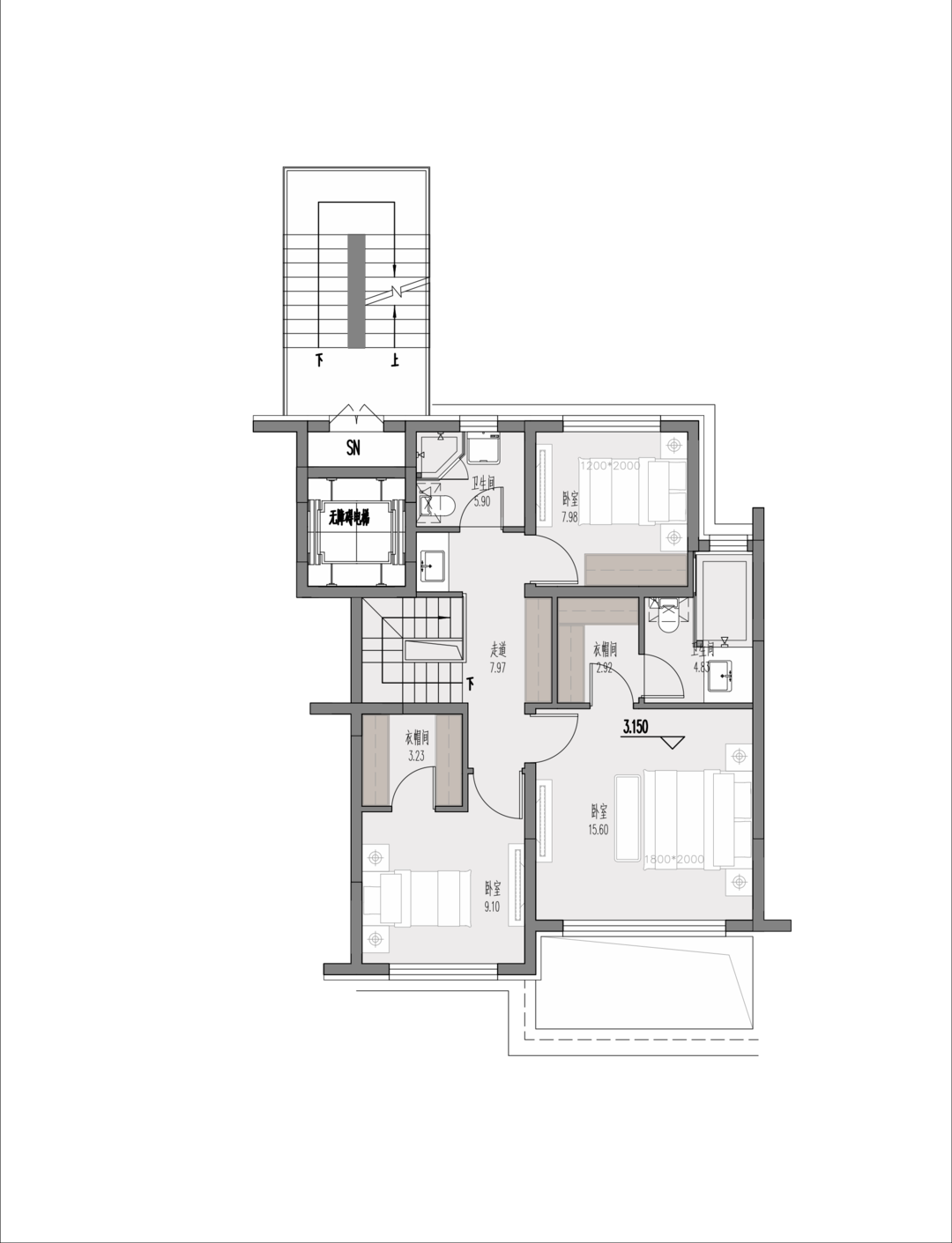 业主平时是一个人住,除了一层的父母房以外二层并不需要很多的卧室,所以想要另外两个卧室改成其他的功能。
