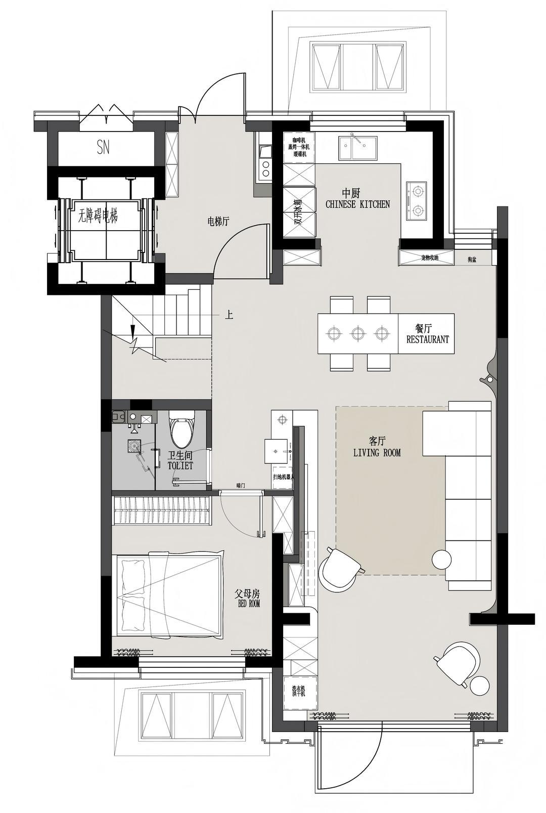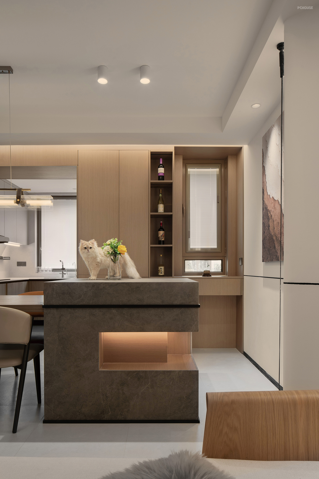 前言: 本案是位于天津的叠拼项目,业主是一位90后技术男生,也是一位资深的美食爱好者,更是爱宠人士,家里养了六只狗和猫,他和妈妈都把其视作自己的家人。宠物也是家人,自然要有适合它们的空间,生活在这样有爱的家里,一定是温馨而自在的。