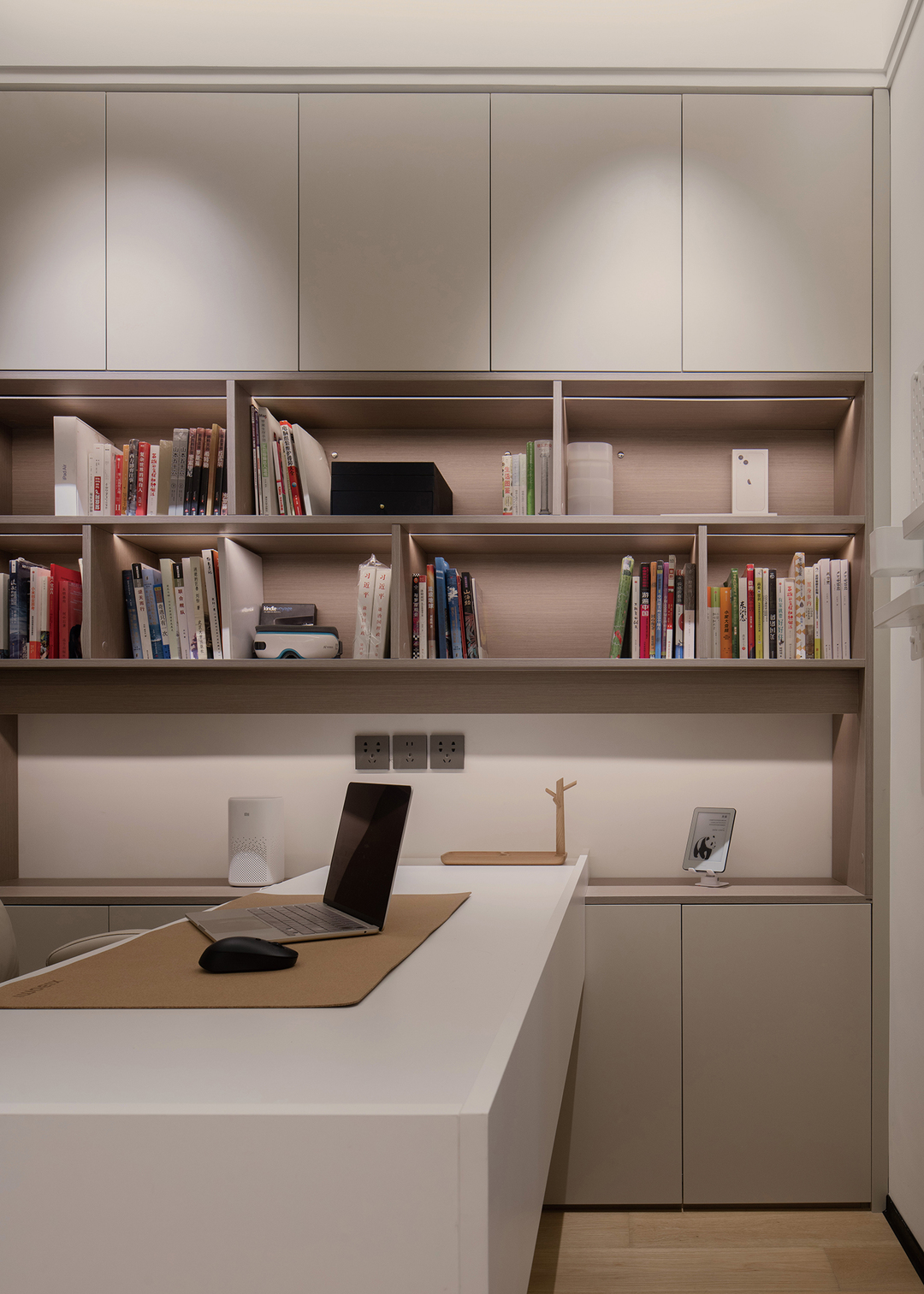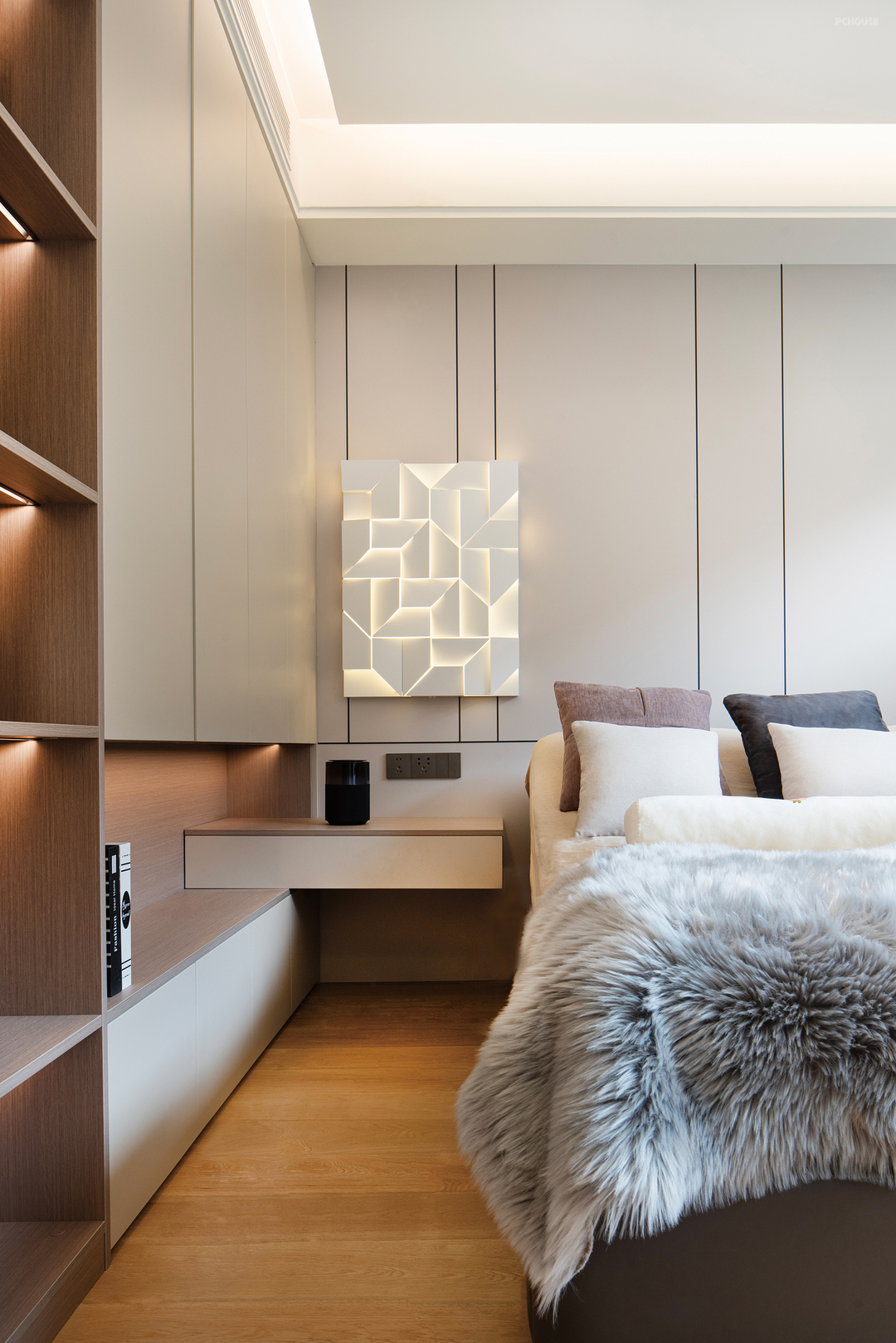 设计师利用现有的空间,将主卧做成了一个套房,除卧室以外,还设置了书房,无论是看书、看剧还是玩游戏,或者是研究自己喜欢的东西,都有一个完全属于自己的安静空间。