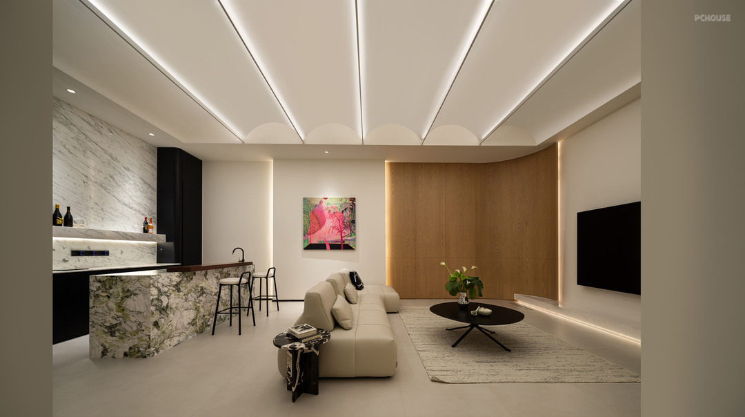 对风起时而言,一种自然而然存在的空间,不以造型和风格为优先级,真实触感大于视觉仿真,动态交互比静态陈设更加重要,让材质本身诉说自然的故事,让结构承载光影。