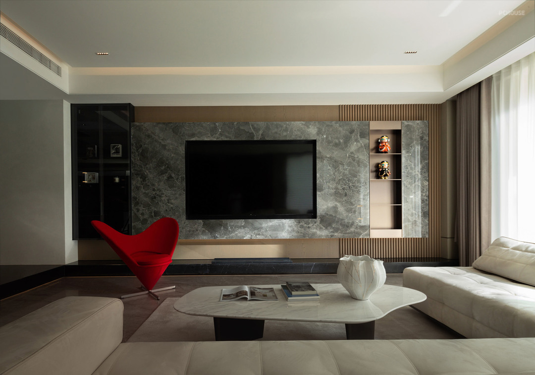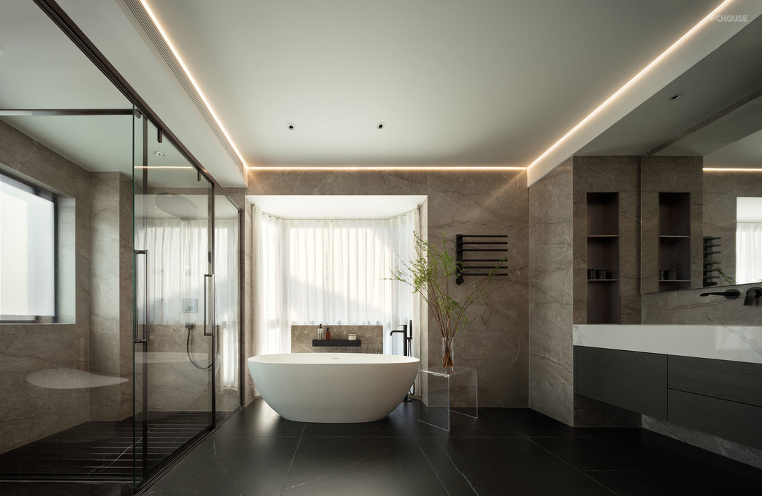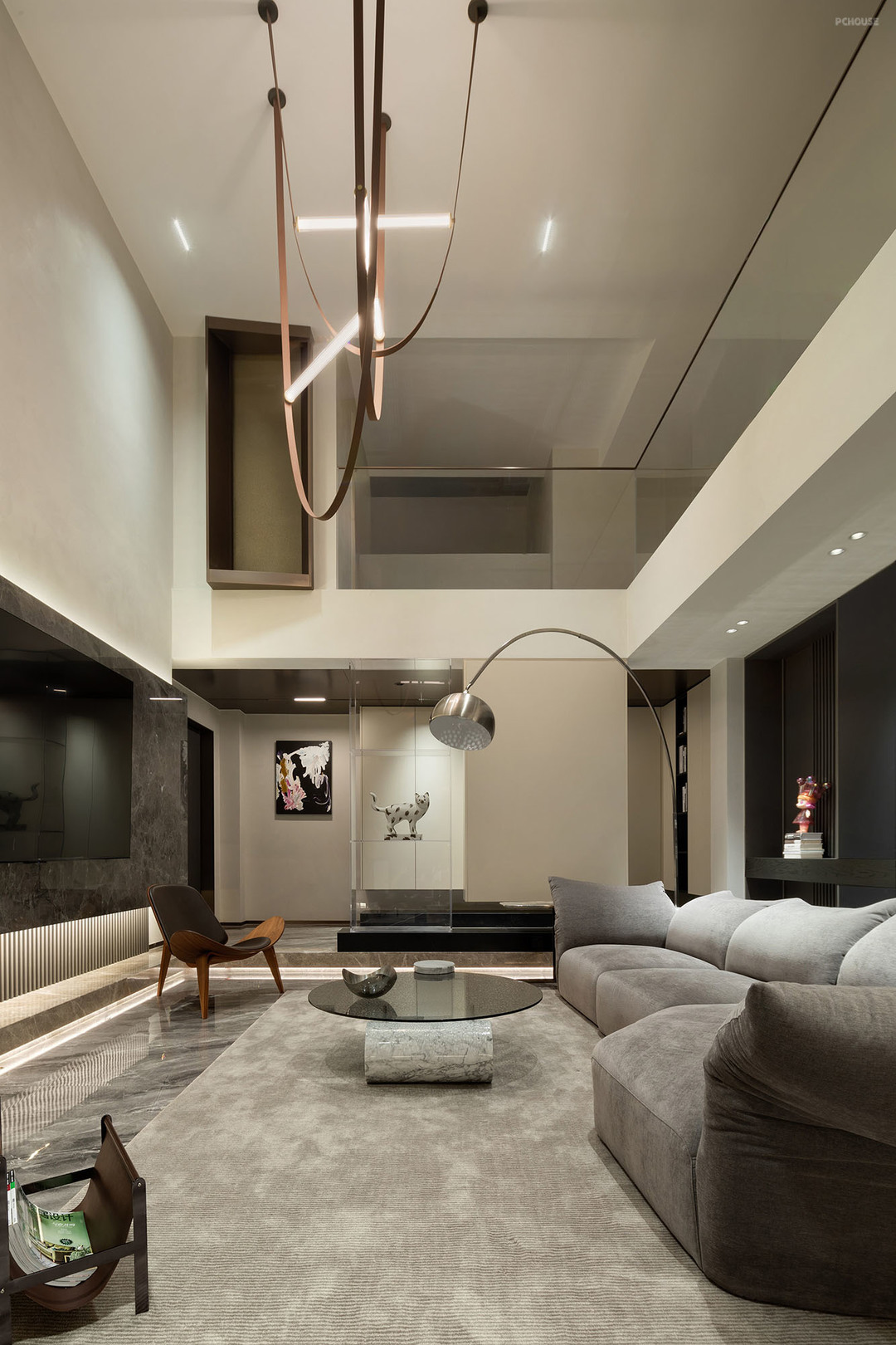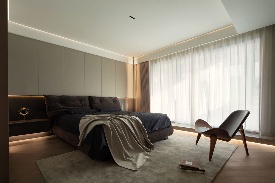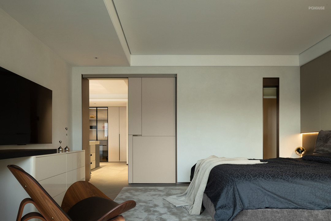 潮流易逝,气质不减,我们希望家历经时间而愈加经典,尽量简化装饰元素,以简约的线条和经典的色彩来表达,因此公共区域使用了不同色度的米和灰,织物、木材、石材相融合,平衡冷暖。
