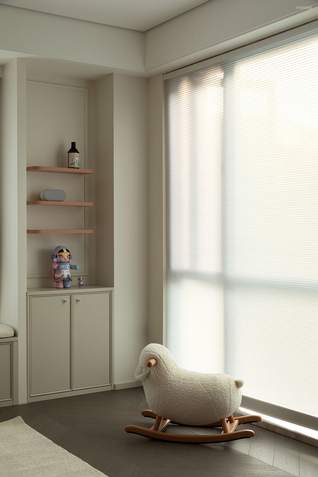 客厅里,白色的纱帘半遮掩时,光透过院子照射进来,忽明忽暗,在这光影里孩子摇摇晃晃长大了,这一幕仿佛就定格在家里,不管三年五载,情感愈加浓郁,而家一直优雅舒适。